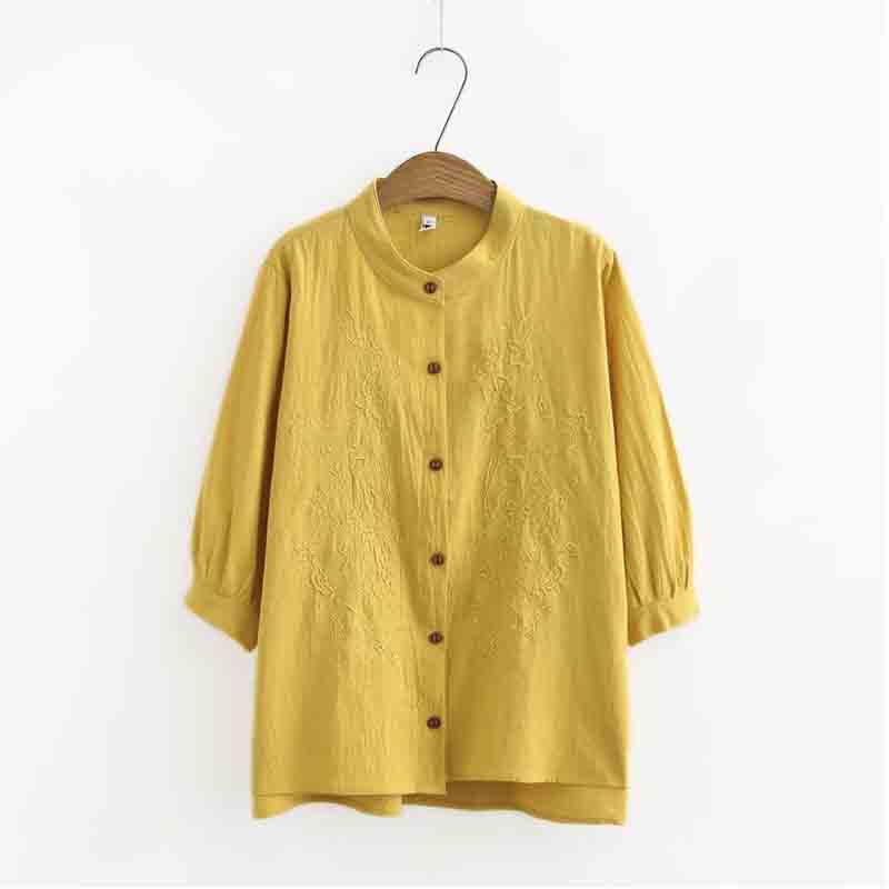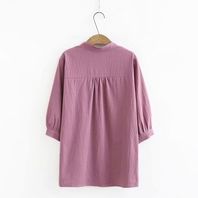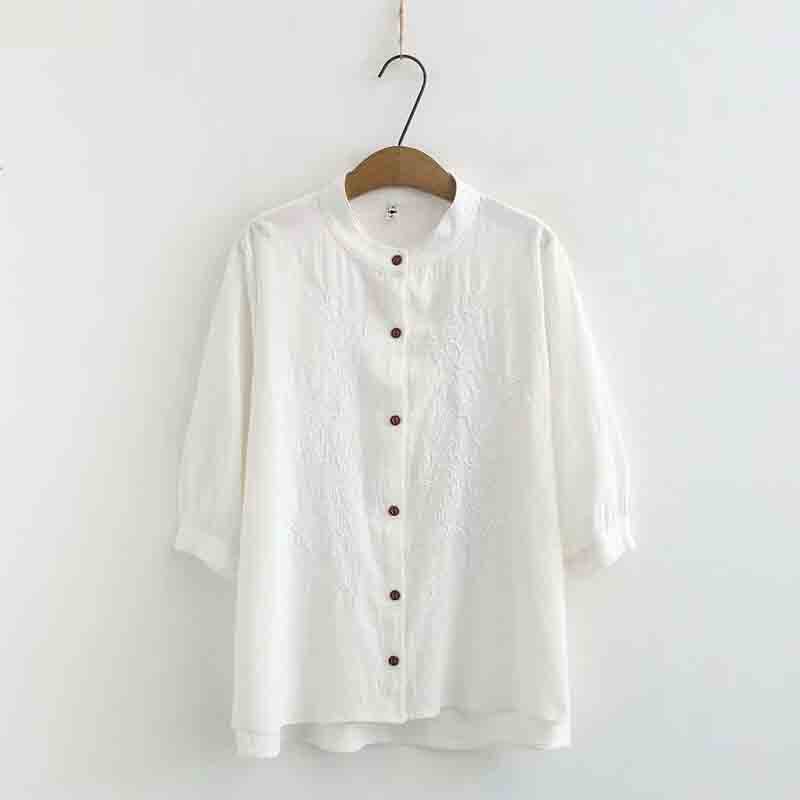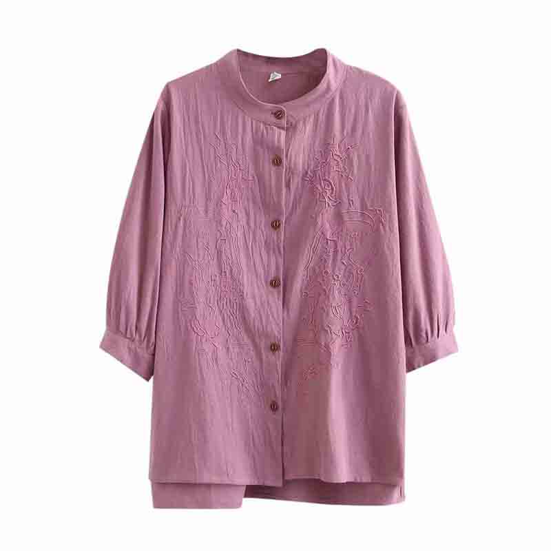 Middle-aged spring new large size loose ladies embroidery lamp seven-point cage sleeve aging jacket middle-aged and elderly mother shirt