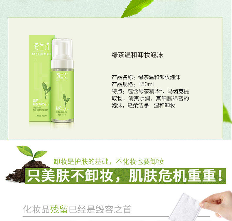 Green Leaf Love Life Green Tea Gentle Cleansing Foam Deep Cleansing Eyes and Lips Non-irritating Makeup Remover Cream Cleansing Water