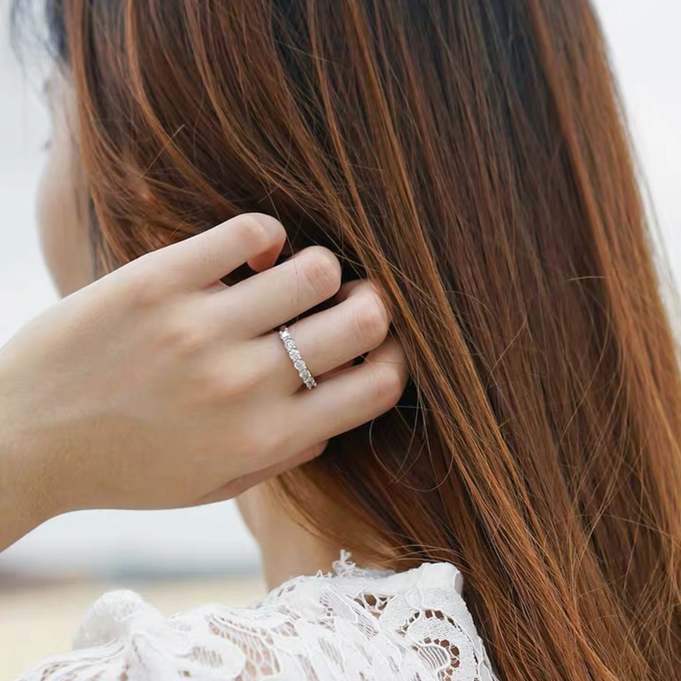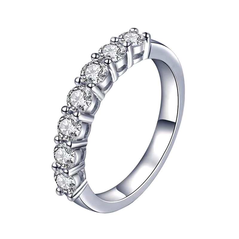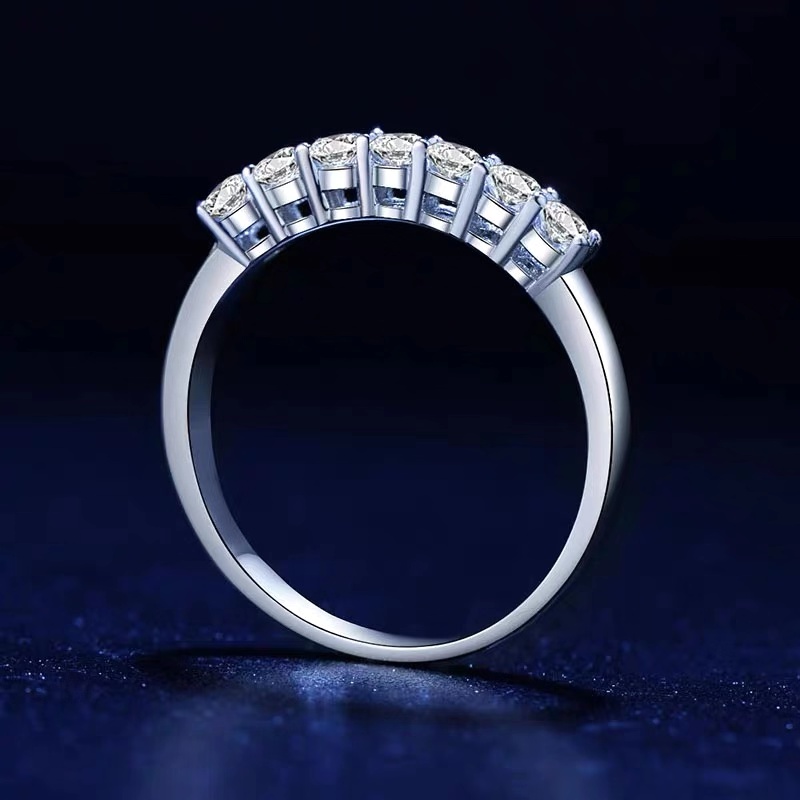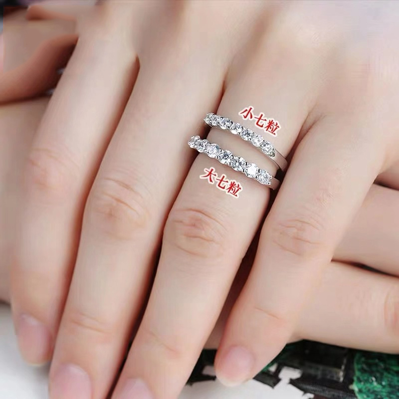Diamond Moissanite Ring Female Imitation Diamond Ring 7 Diamond Row Diamond Stacked Women's Ring D Color PT Platinum Tail Ring Secondary Ring