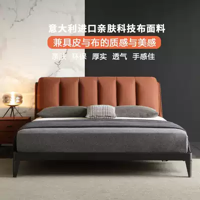 Simple modern small apartment light luxury master bedroom double Technology fabric disposable soft bag steel frame Net red iron bed cloth bed