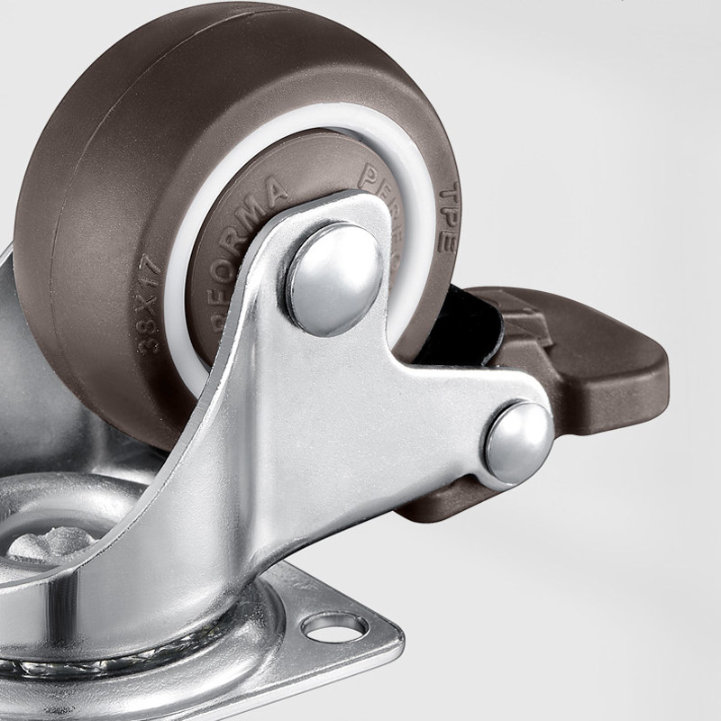 Furniture load bearing industrial universal trundle roller 2 inch 1 mute rubber nylon with brake flat flat trolley swivel chair