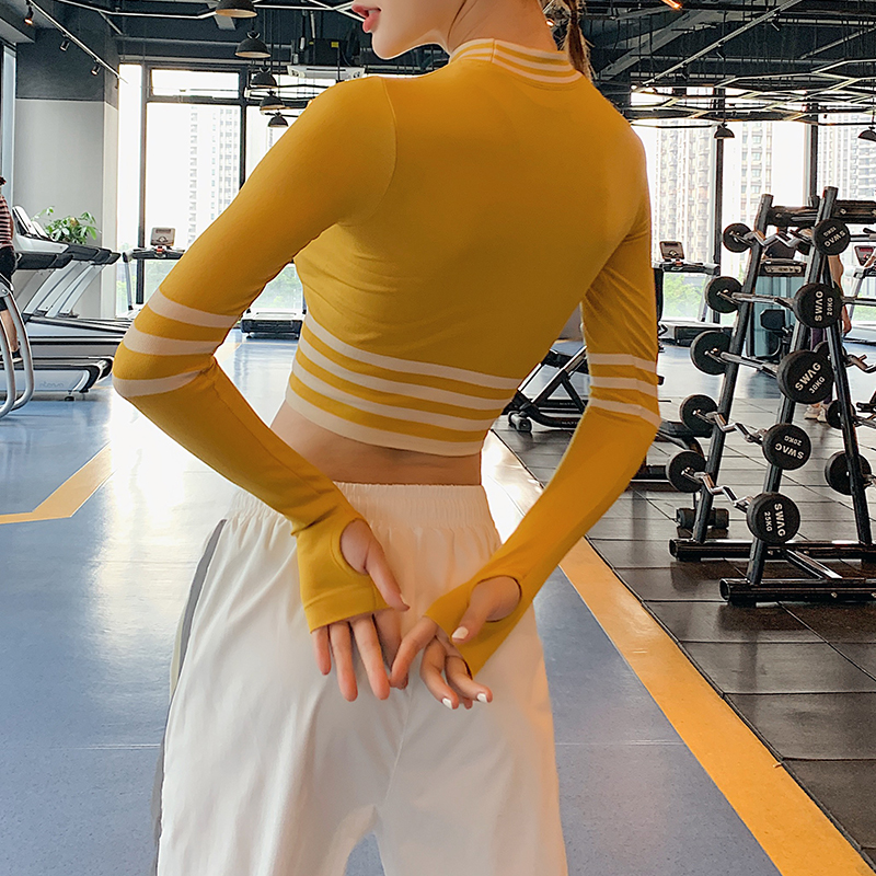Striped Open-navel Long Sleeve-Black Striped Open-navel Long Sleeve-Pink Striped Open-navel Long Sleeve-Yellow