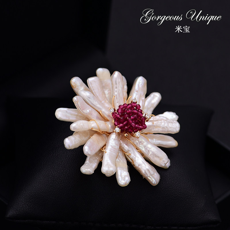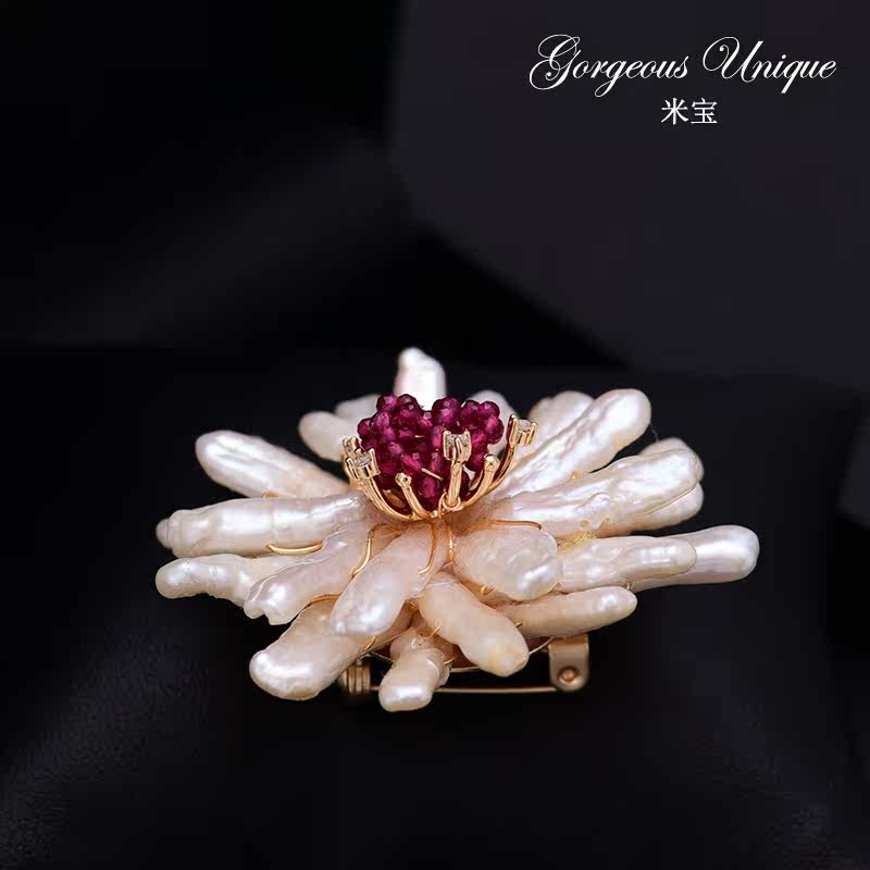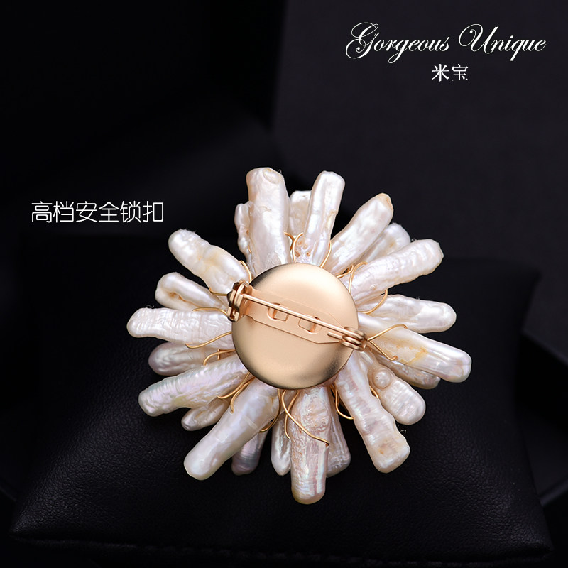Japanese and Korean retro handmade light luxury corsage Joker temperament natural Baroque special-shaped pearl big Daisy brooch pin
