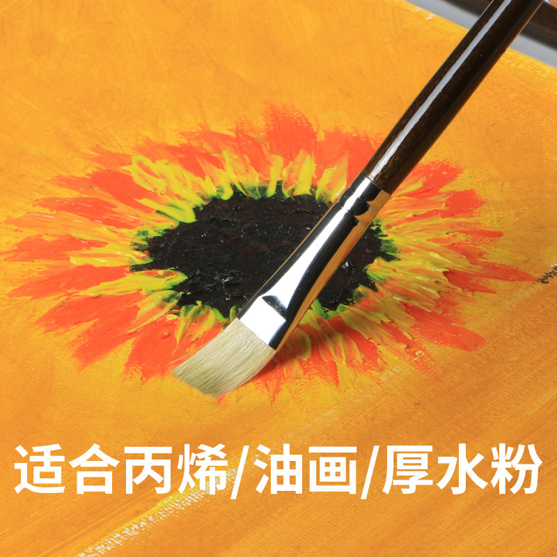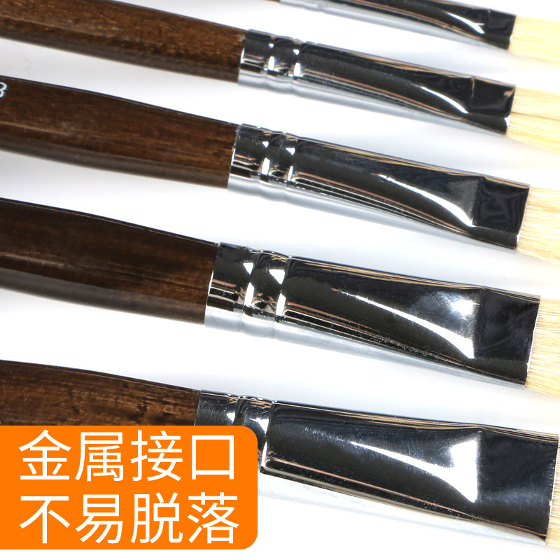 Picture painting pig hair oil painting pen Acrylic gouache pen set Professional pigment pen Oil painting wall painting Pig hair hard brush Beginner art brush Flat head student painting pen row pen brush