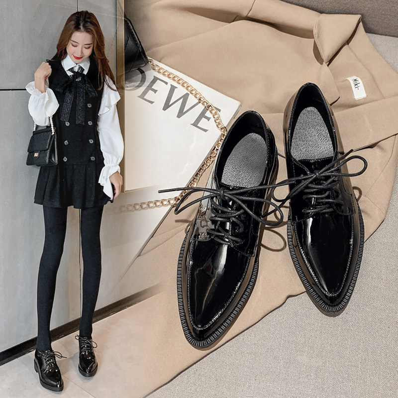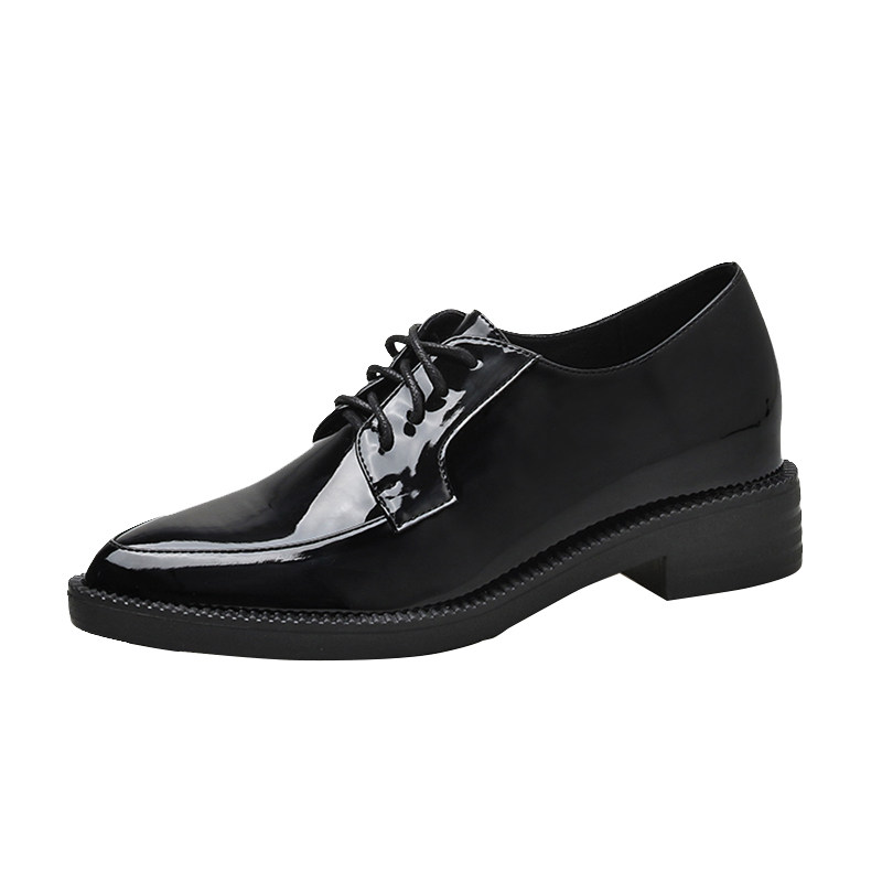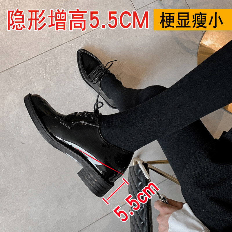 British style black small leather shoes women's soft leather 2022 spring and autumn new lace-up pointed toe work shoes inner height increase women's shoes