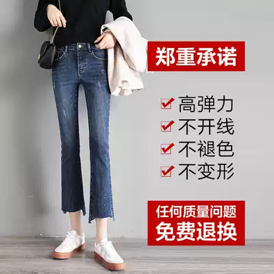 Denim Bell pants women's loose straight high waist 2021 autumn wear new Joker slim nine micro female pants