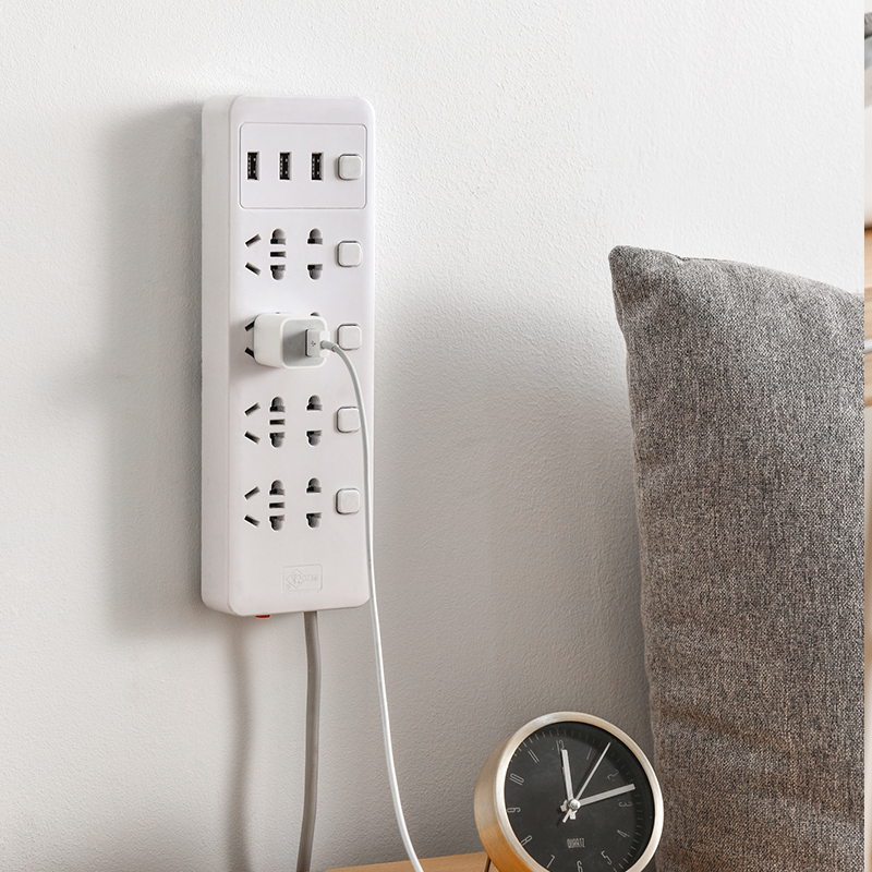 Plug-in fixer free of punch wall wall-mounted plug-in, no-mark wire containing multifunctional powerful socket extension cord