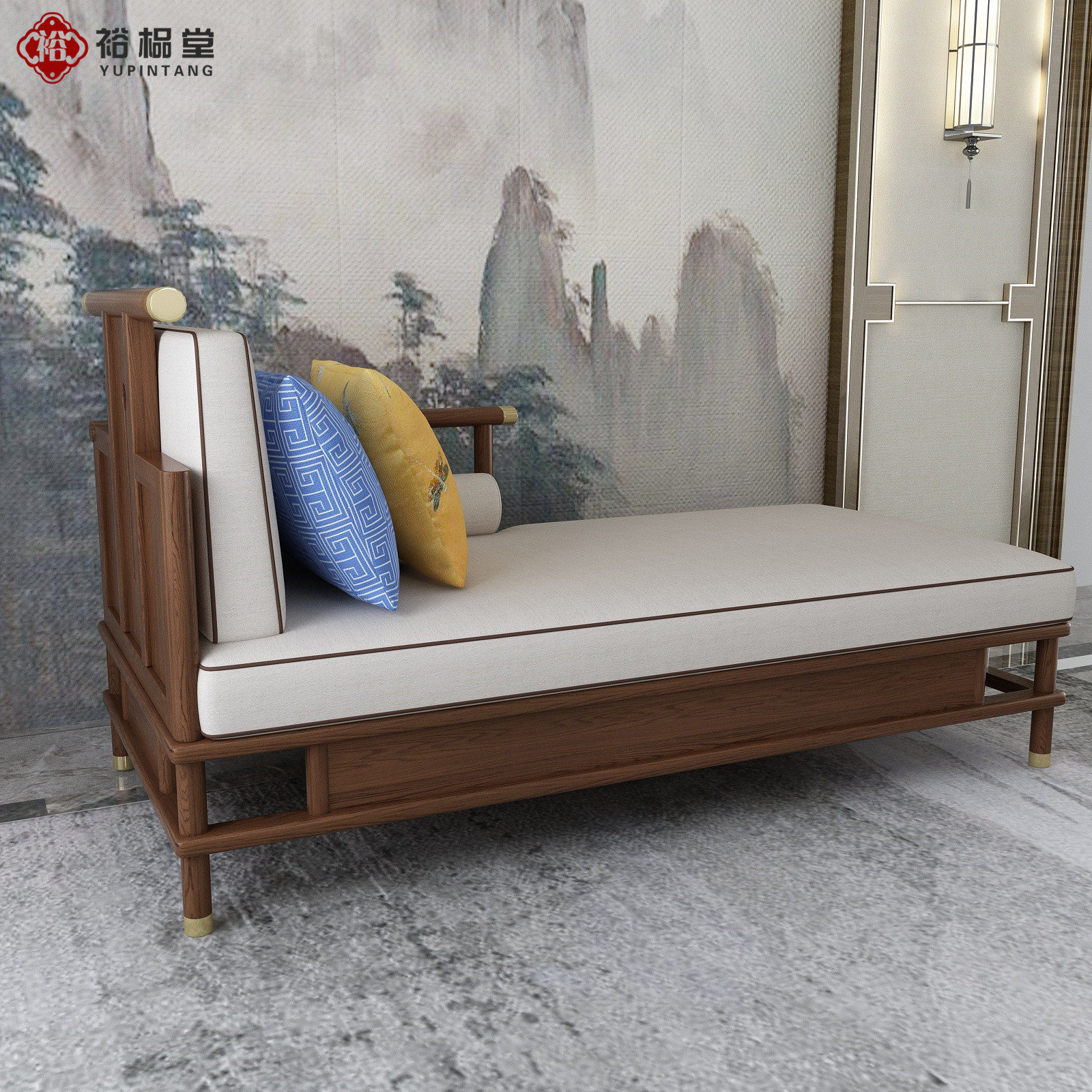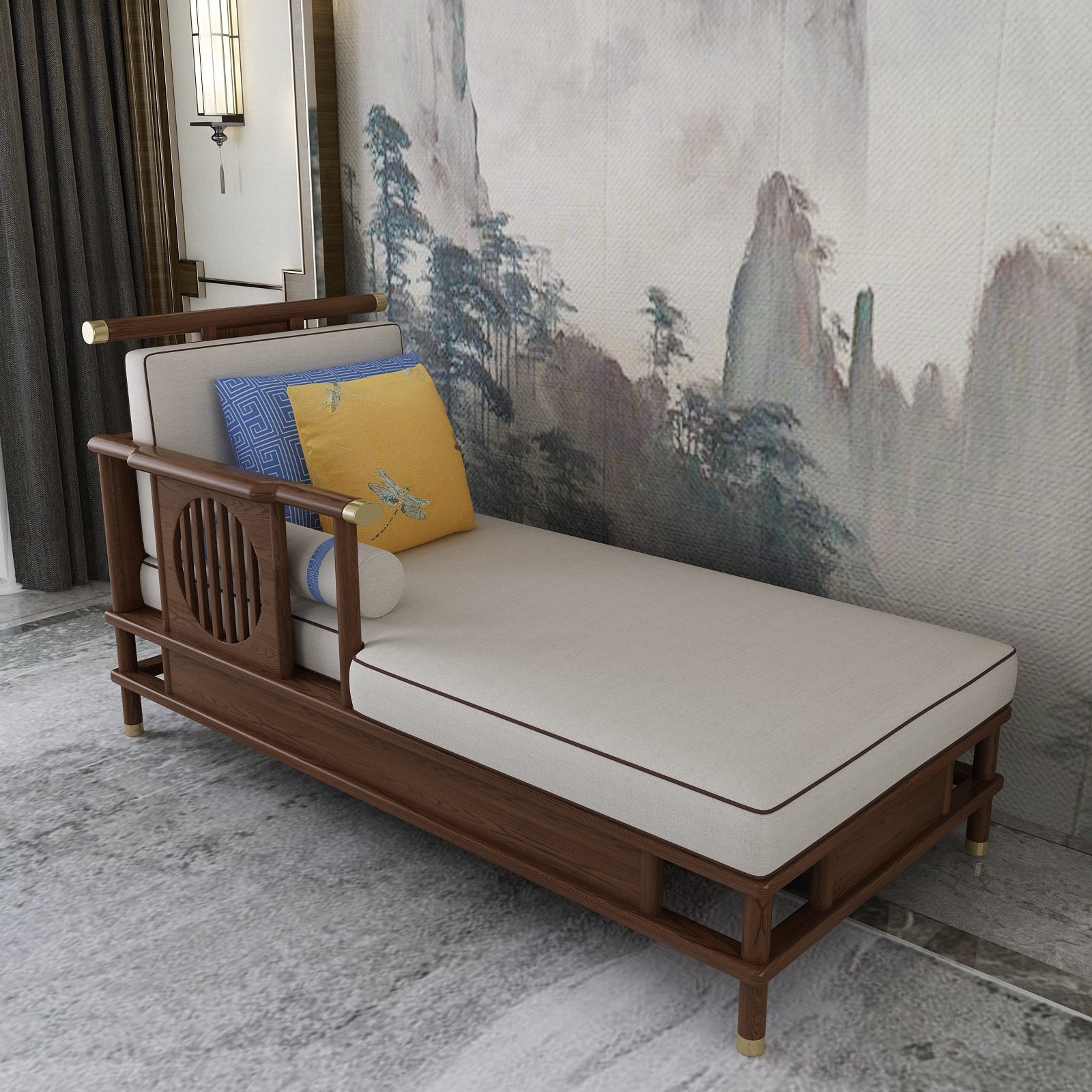 New Chinese style solid wood chaise longue modern living room sofa reclining chair beauty couch Zen bedroom chaise longue bed furniture customization