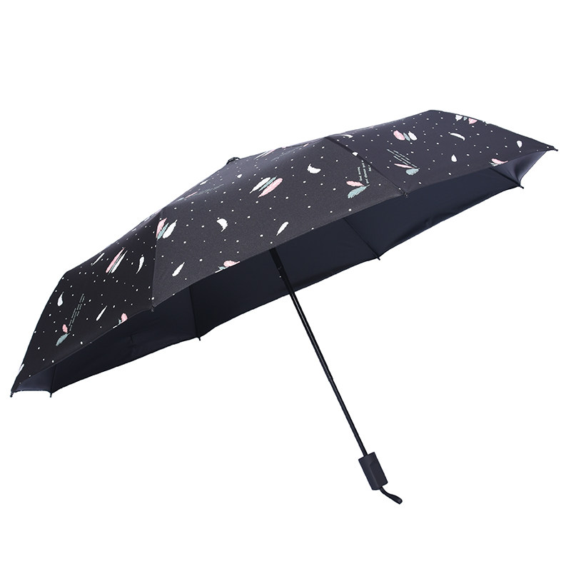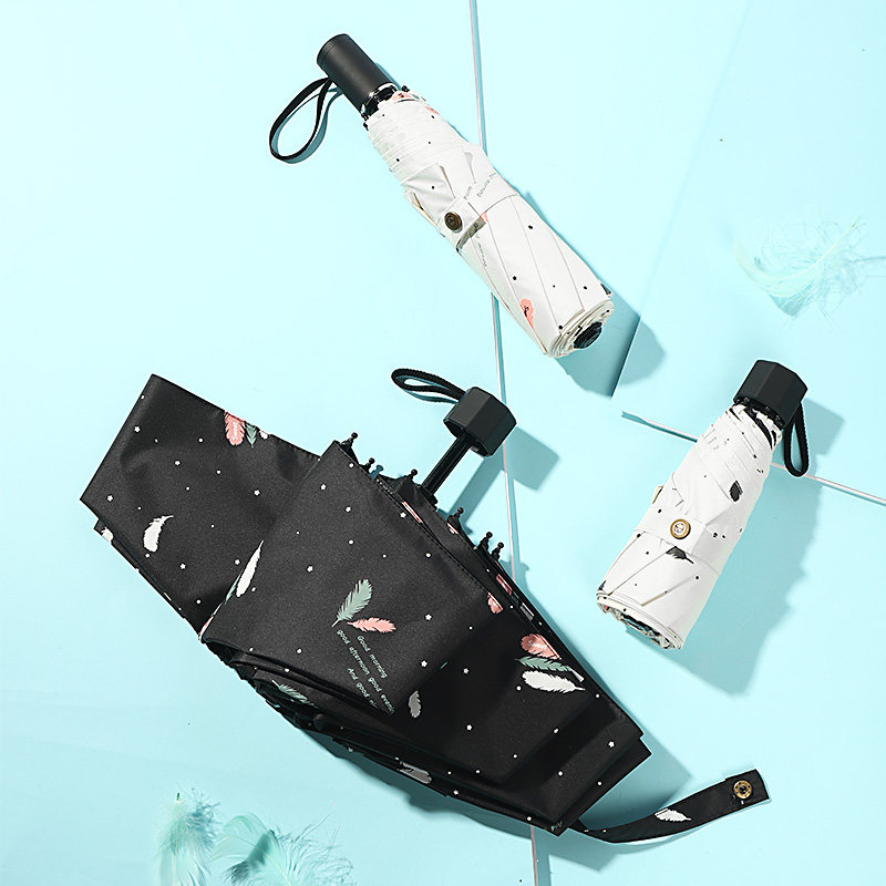 Folding umbrella female portable feather sunny and rainy weather umbrella black rubber sunscreen anti-UV shading umbrella fully automatic
