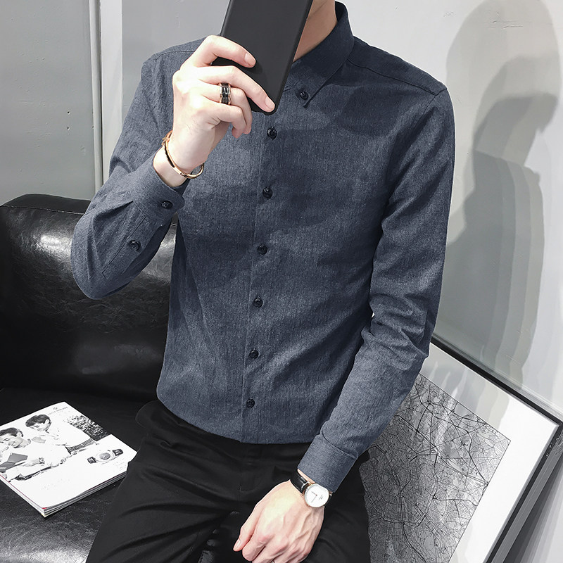 Spring new Japanese shirt men's long-sleeved Korean version slim and handsome trend casual spring and autumn inch shirt men's shirt