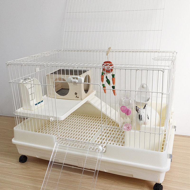 riyoka Ruiyou family rabbit cage luxury double deck rabbit villa white double drawer anti-spraying guinea pig dutch pig cage