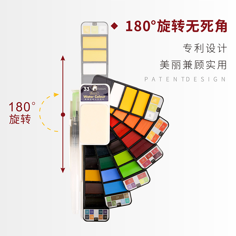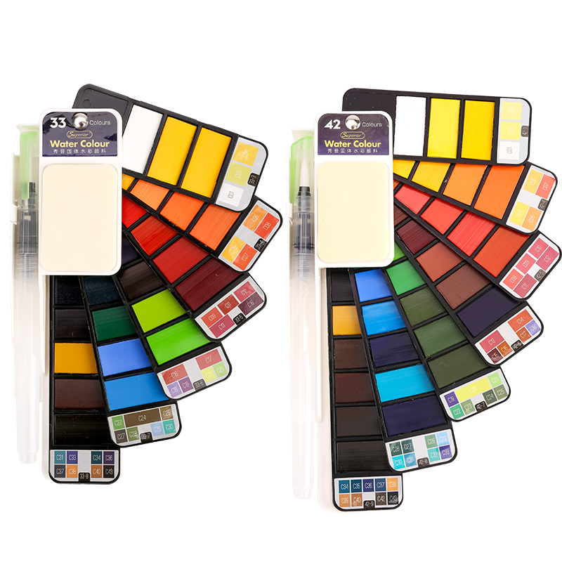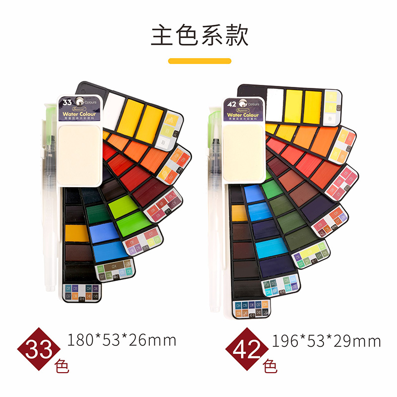 Show P Sector Solid Water Color Paint Suit Portable Beginners Drawing Paint Box Hand-painted Design 33 Color 42 Color Painting Tool Sketching Students Use Children's Water Powder Fine Art Professional Fold