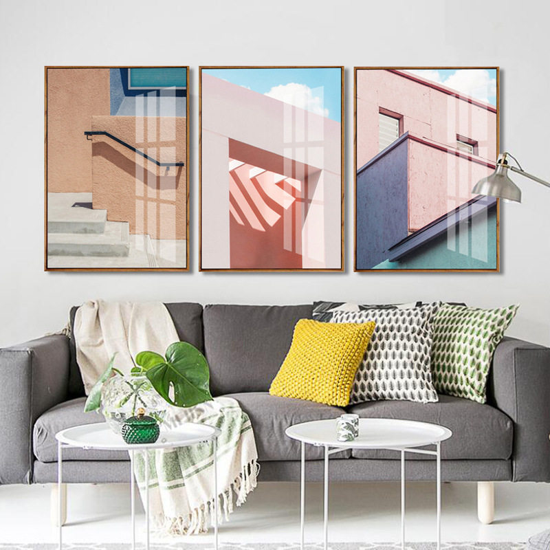 Nordic Light Lavish Glazed Painting Living Room Decoration Painting Sofa Background Wall Abstract Hung Painting Modern Decorative Triptych