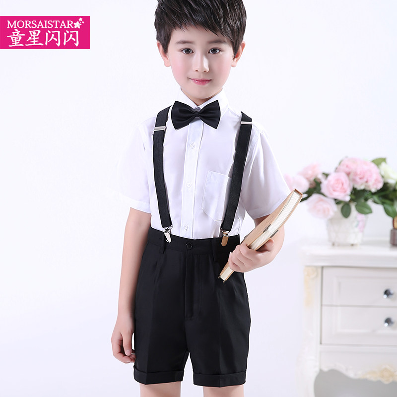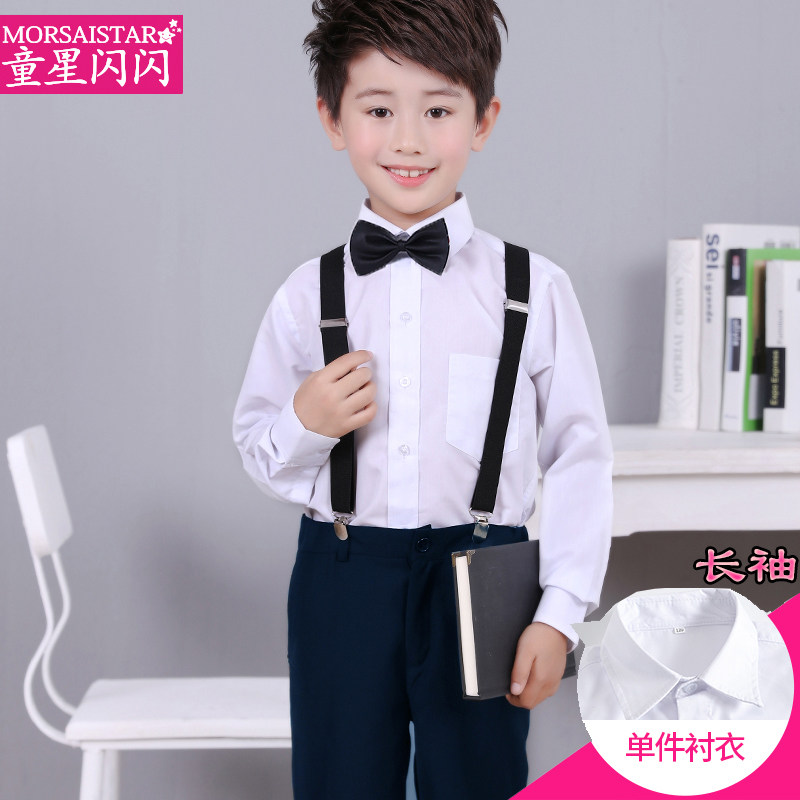 Child Star Shiny Boy 2022 New White Shirt Spring Summer Style Kindergarten Performance Small Host Shirt Blouse