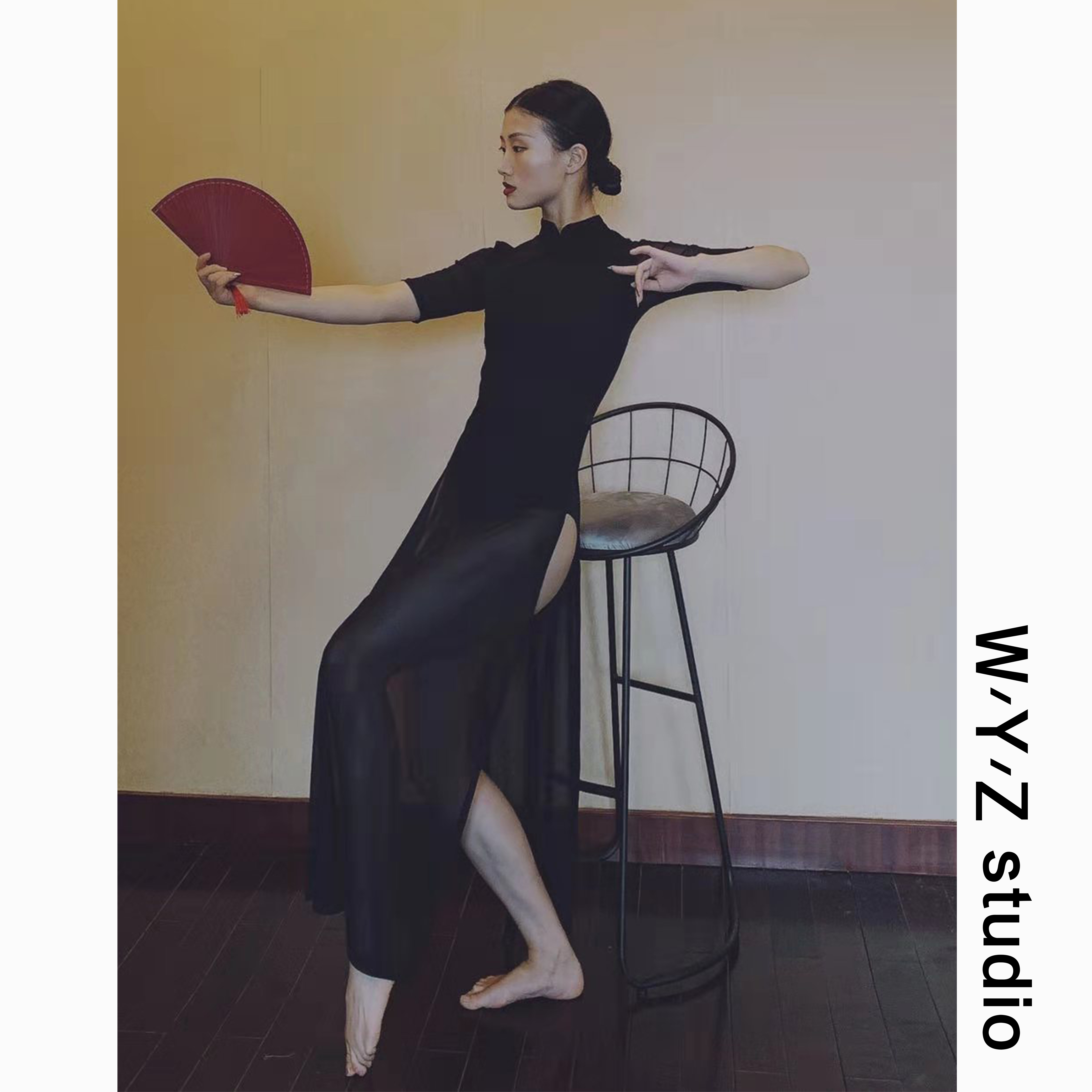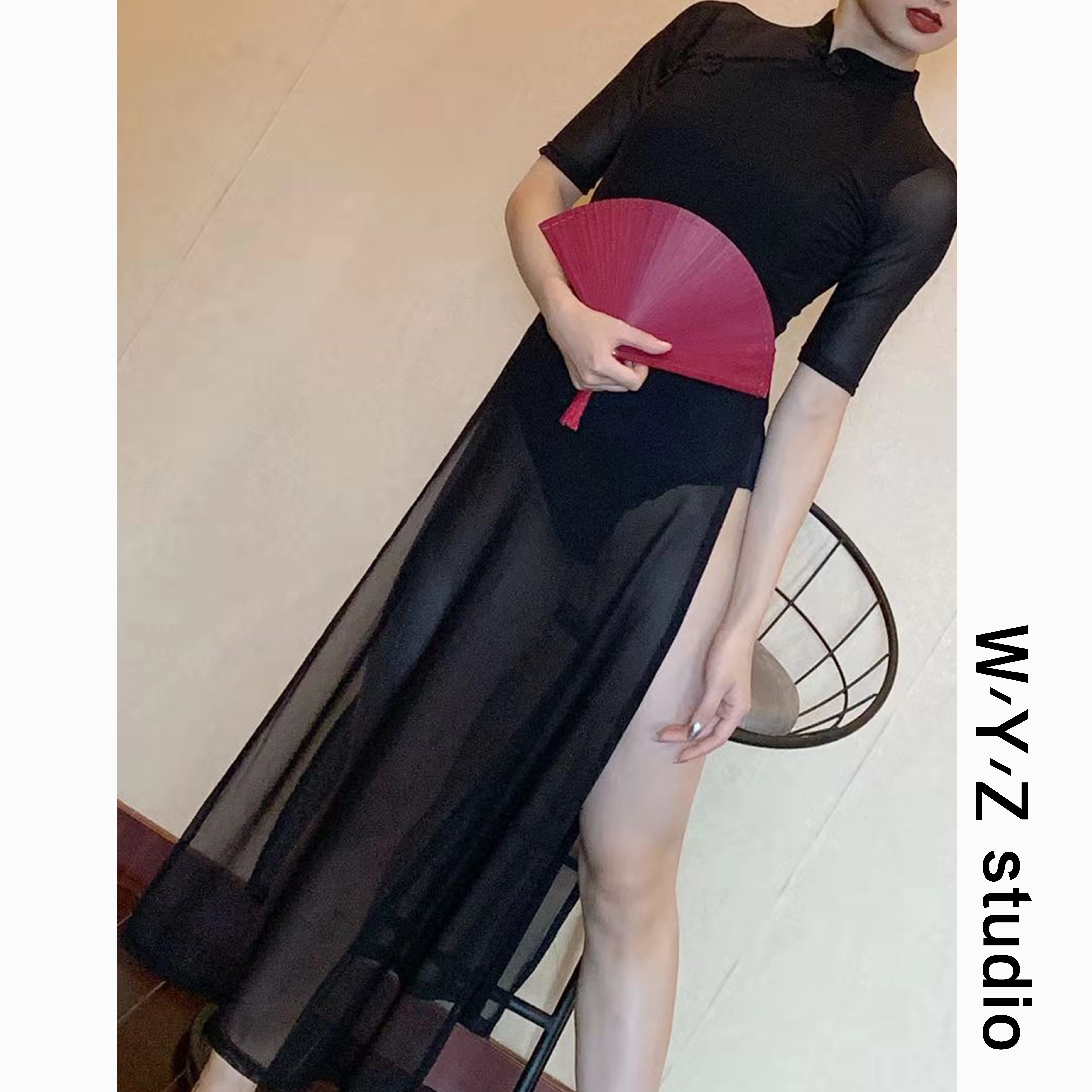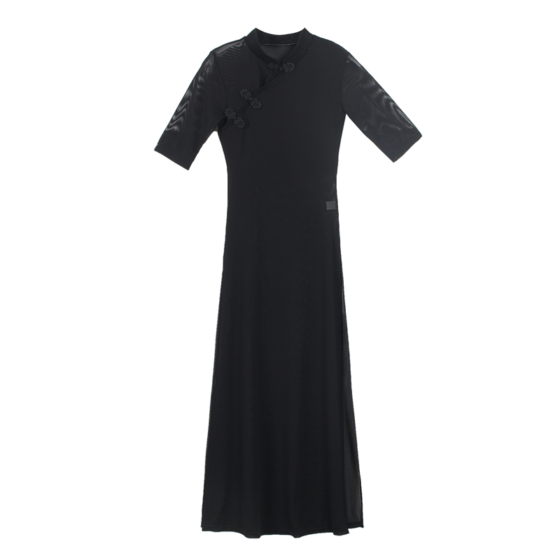 WYZ cover custom black clairvoyant qipao style fashion 100 lap and half high collar women's dress the Chinese wind