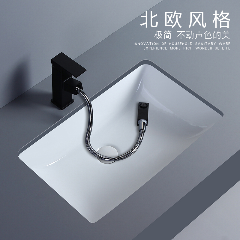 600m rectangular flat bottom floor pelvis large size Home Makeup Room Ceramic Flush wash basin Single sink 24 inch