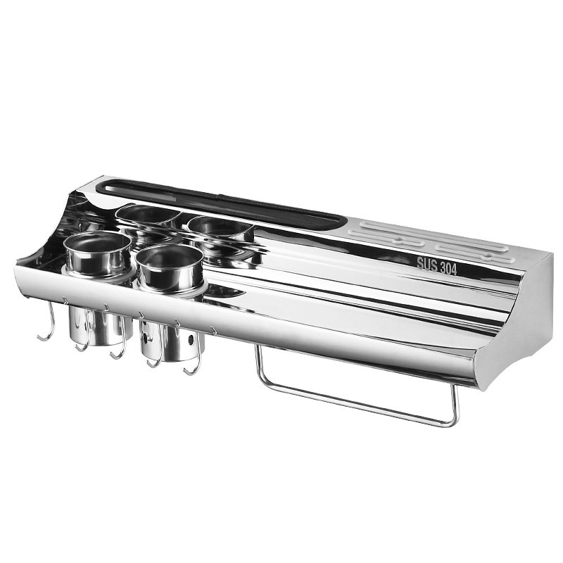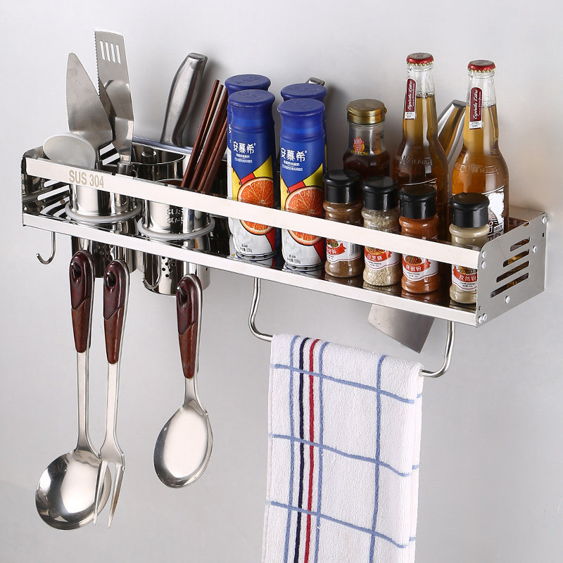 304 stainless steel kitchen supplies rack free punching wall-mounted seasoning knife rack wall rag storage layer shelf