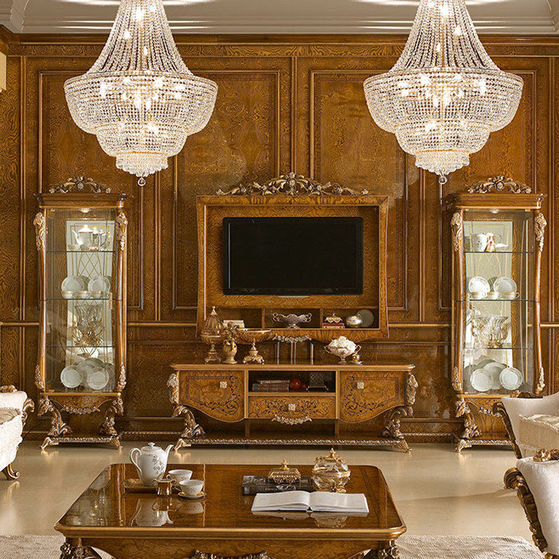 Eurostyle solid wood wine cabinet TV cabinet combination French style double door glass display cabinet Xuanguan cabinet living room custom furniture