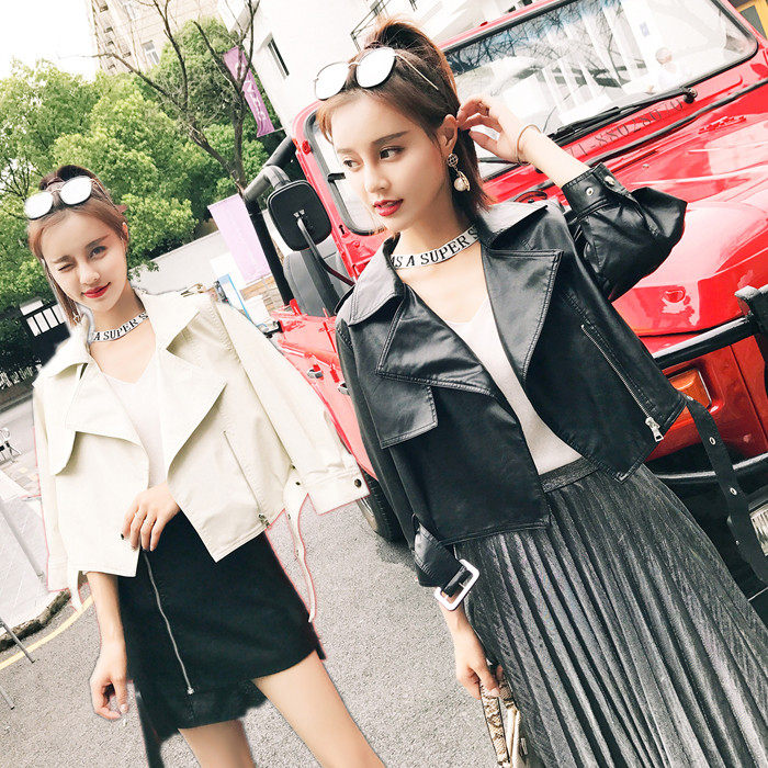 European station 2022 spring and autumn new Korean style leather jacket women's short jacket loose motorcycle leather jacket all-match women's clothing