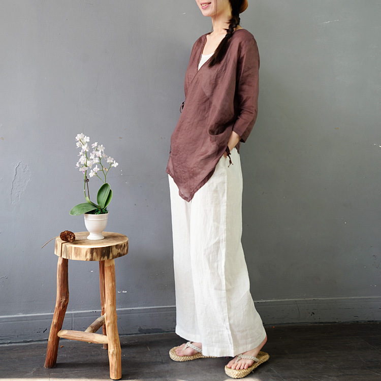 Ethnic Wind Spring Summer and summer Hemp Jersey Purple Chinese Blouse Tea Suit Handed Linen Retro Irregular Blouse Women's Clothing