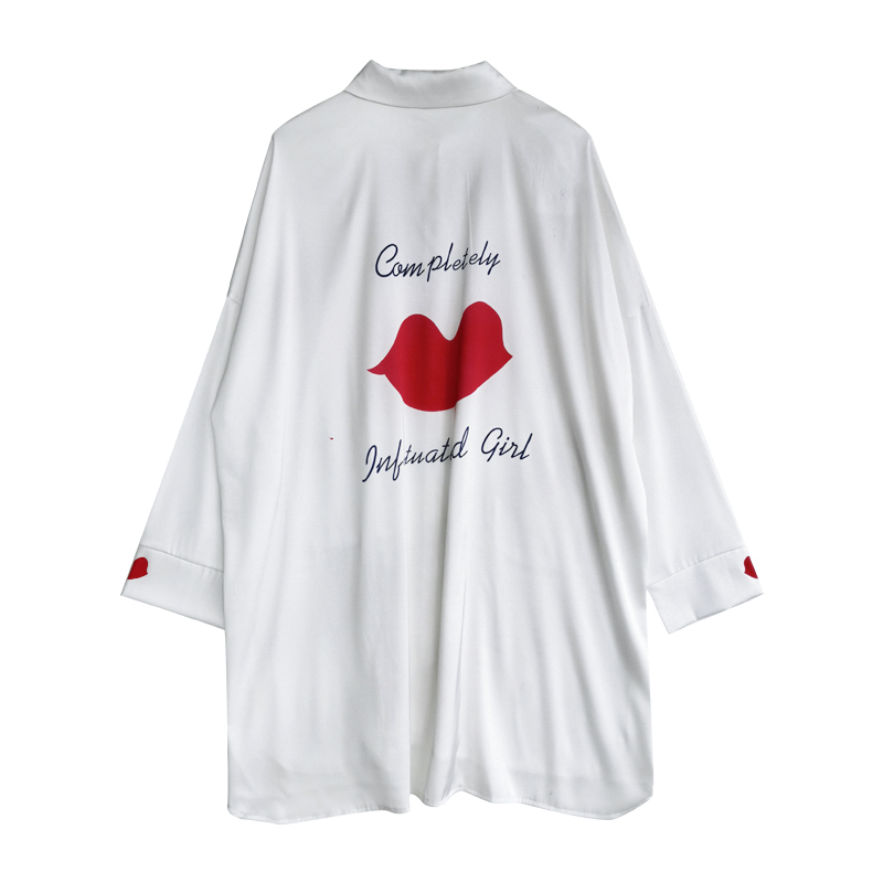 Long Sleeve White Red Lip Shirt Sleeping Skirt Long Sleeve Pure White Shirt Sleeping Skirt Long Sleeve Back Small Loving Shirt Sleeping Dress