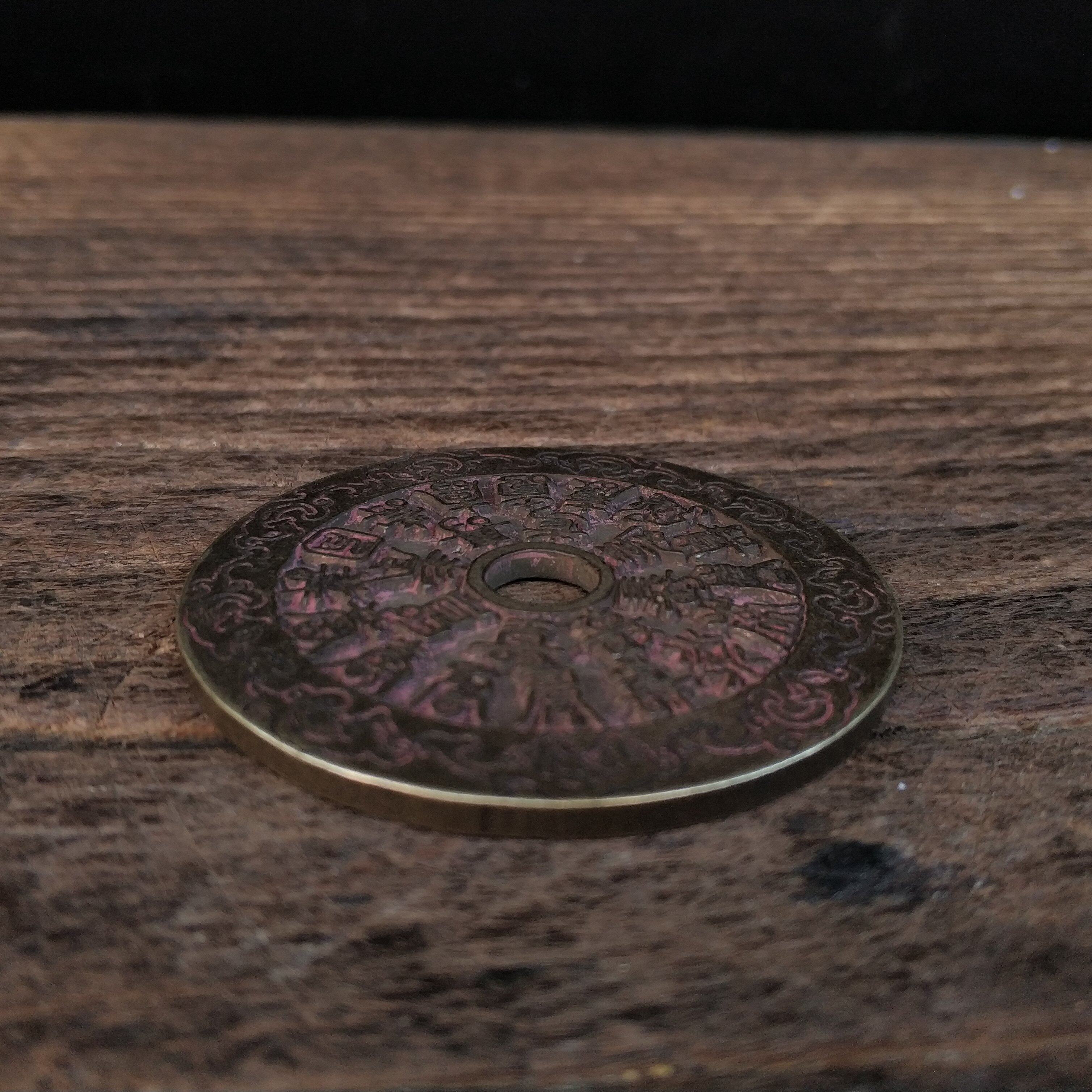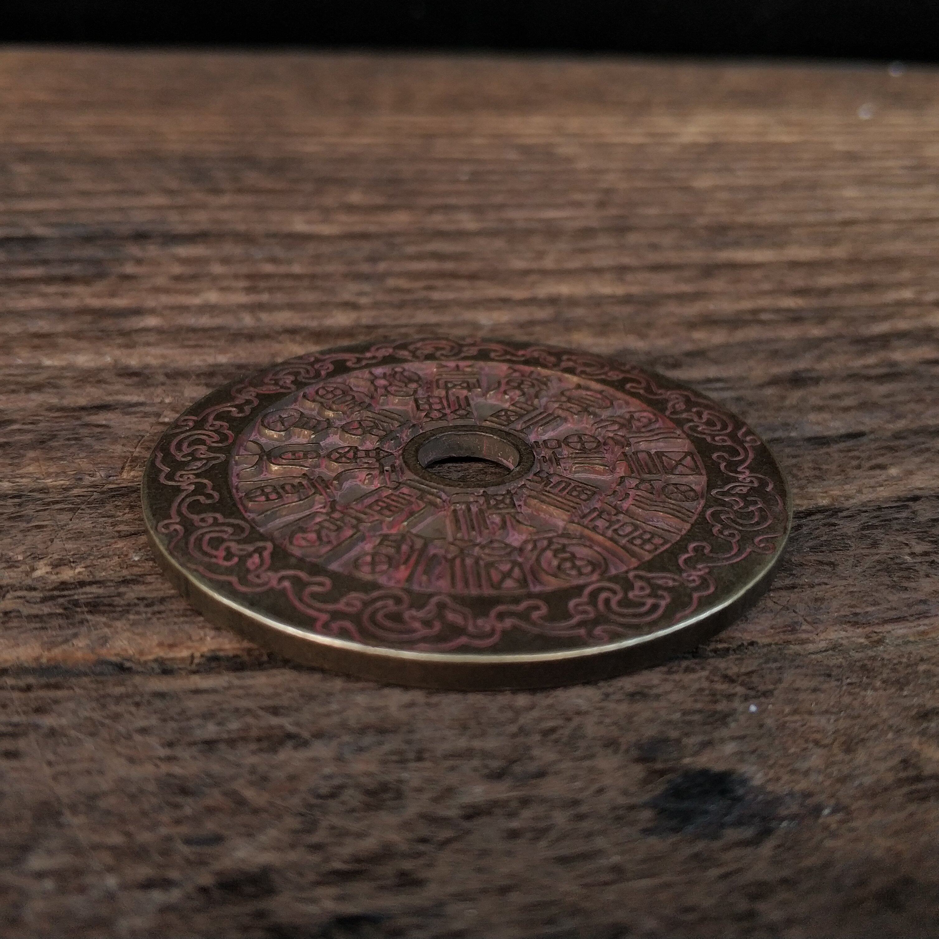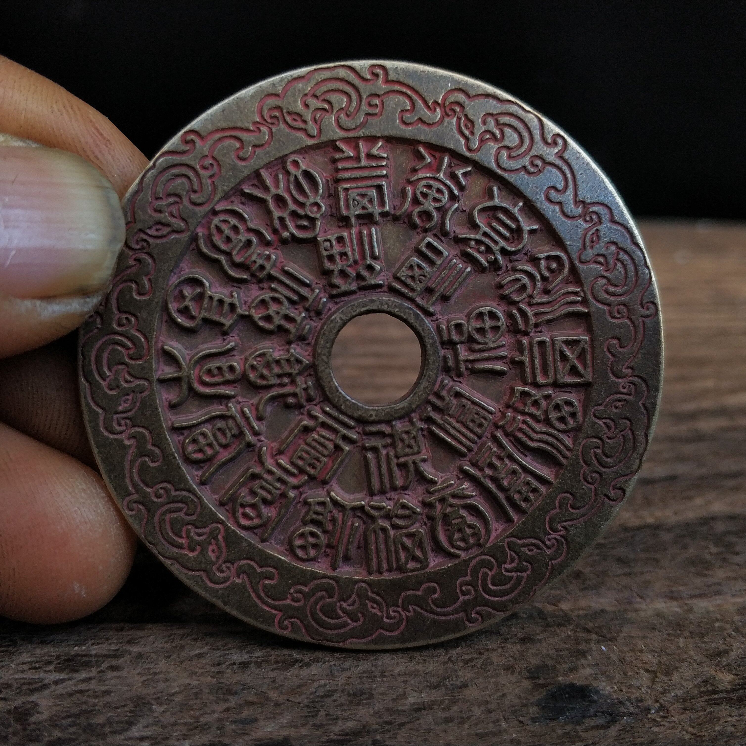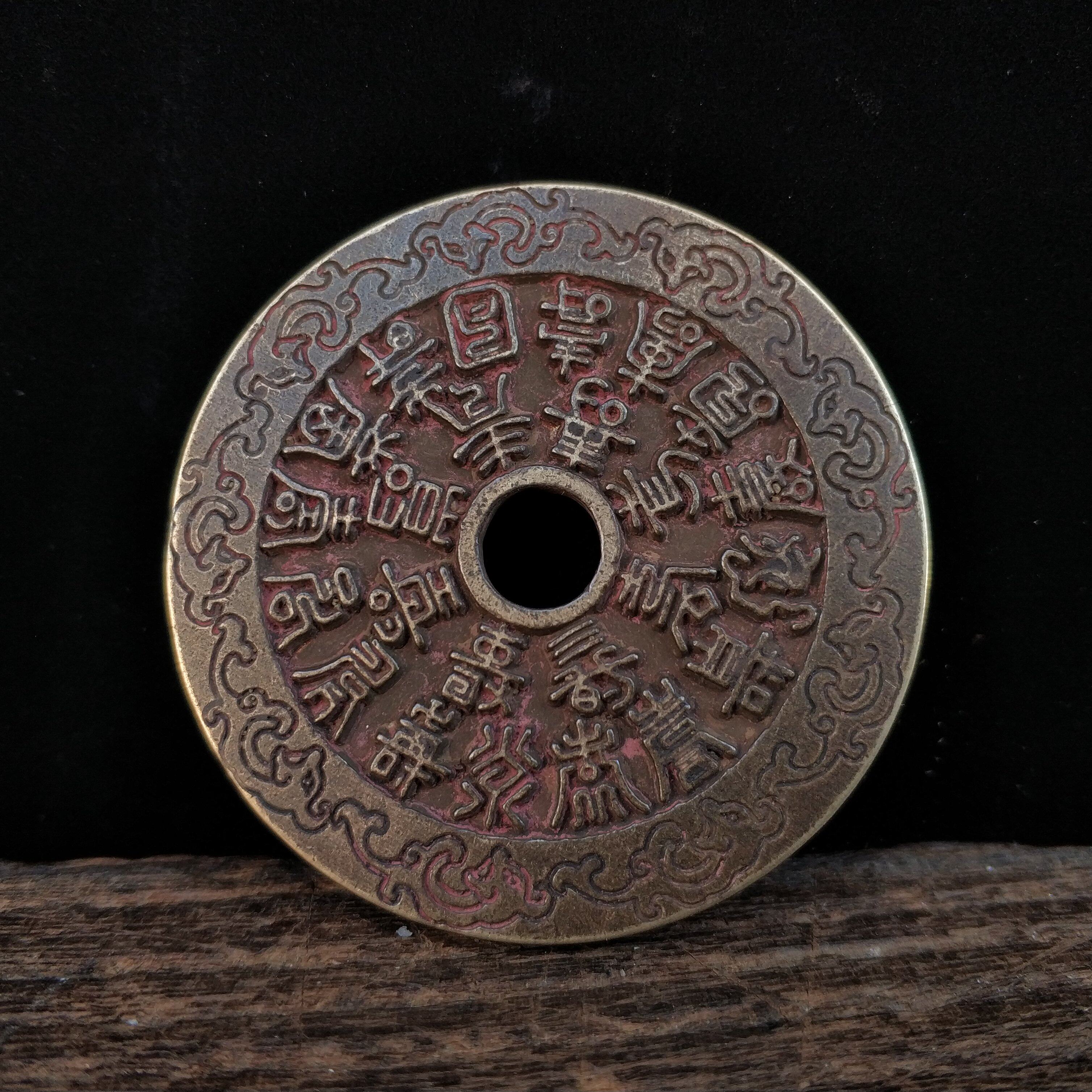 Red cinnabar Fushou character copper coin Guanyin Bodhisattva Lion Yantai incense burner brazier scale vintage nostalgic practical collection
