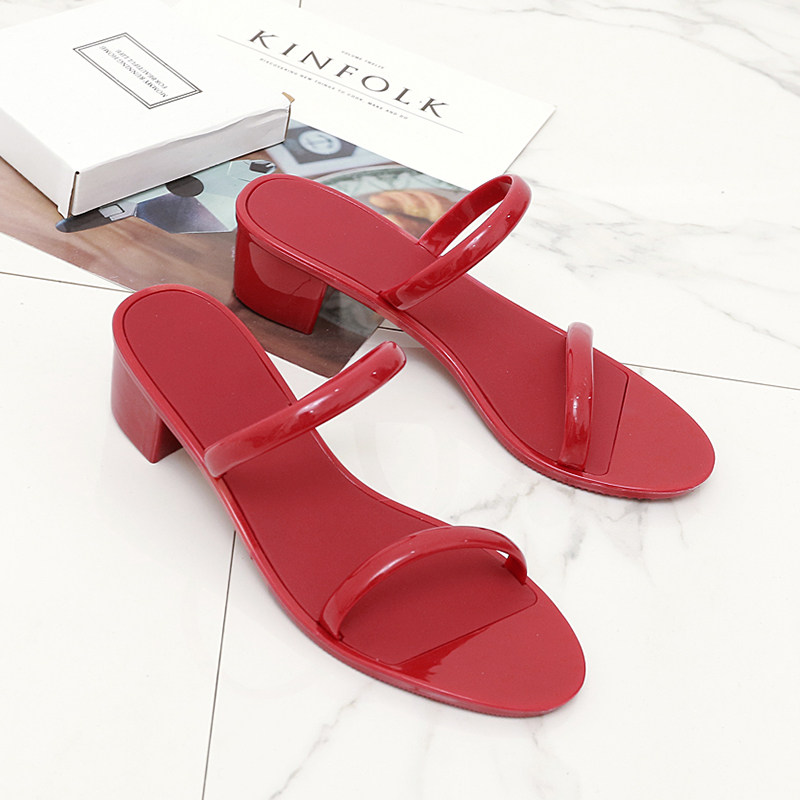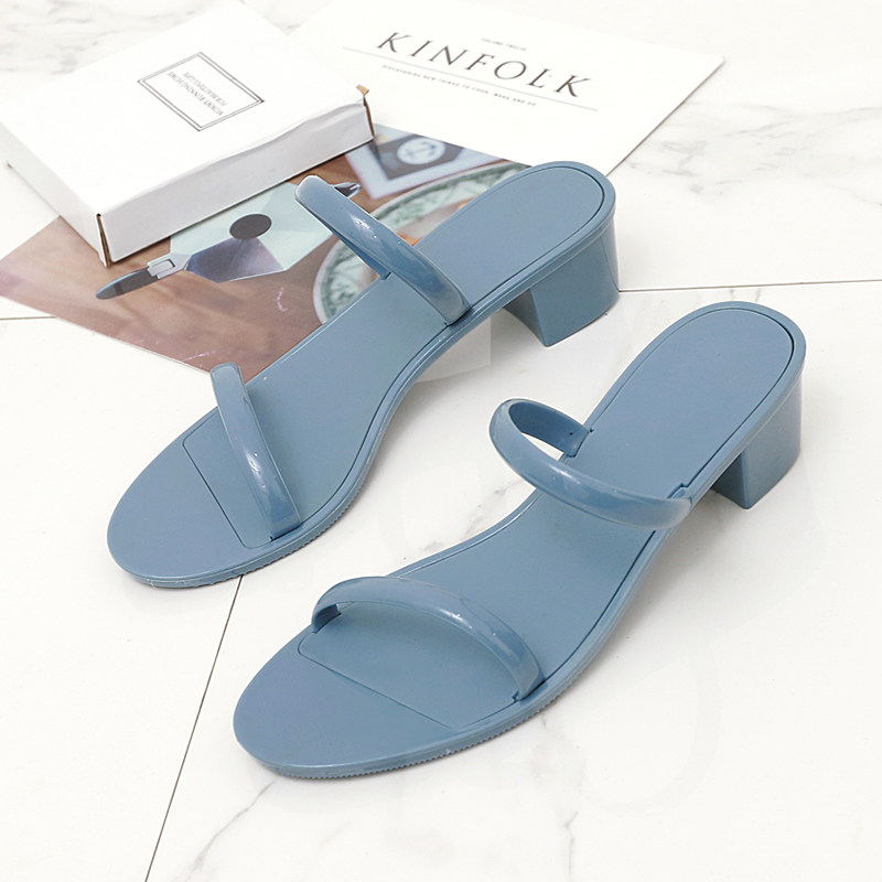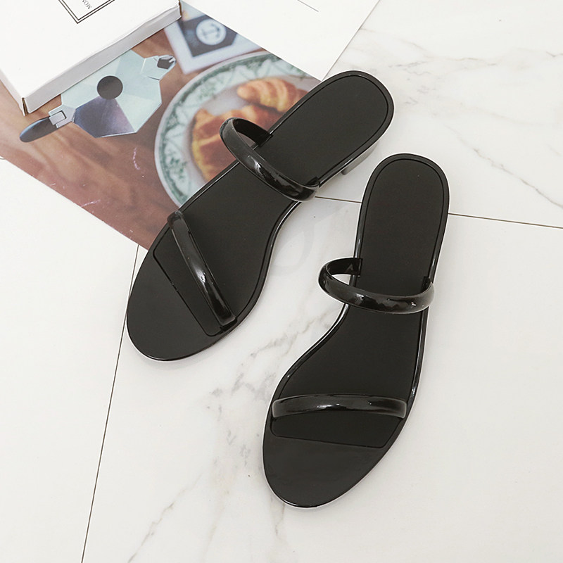 2021 new beach shoes slippers women's summer fashion outside wear seaside thick heel sandals jelly shoes flat heels with thin straps