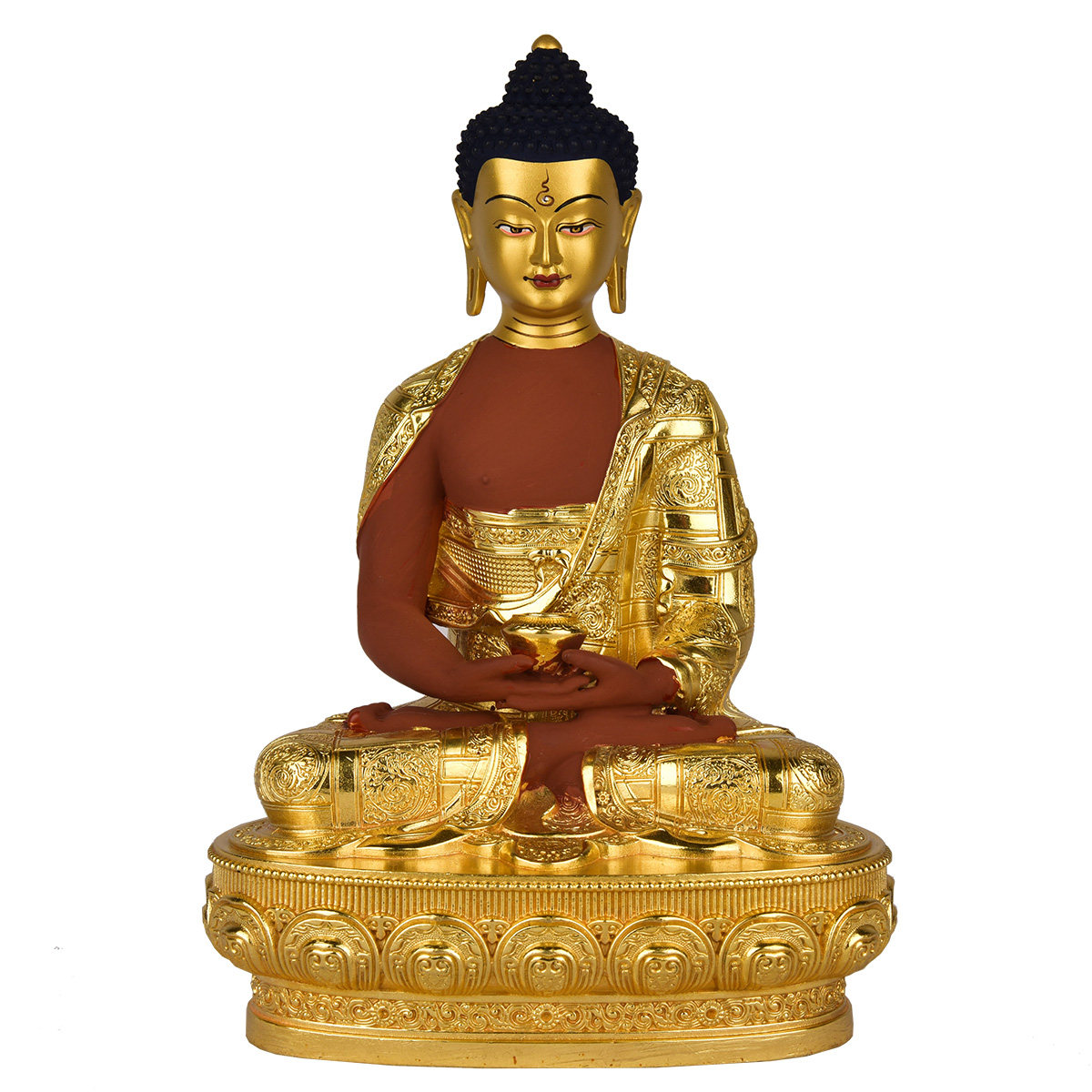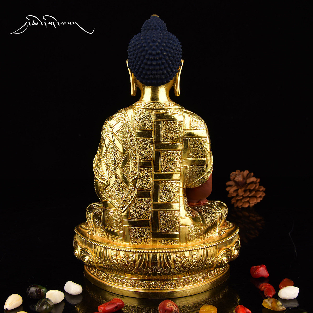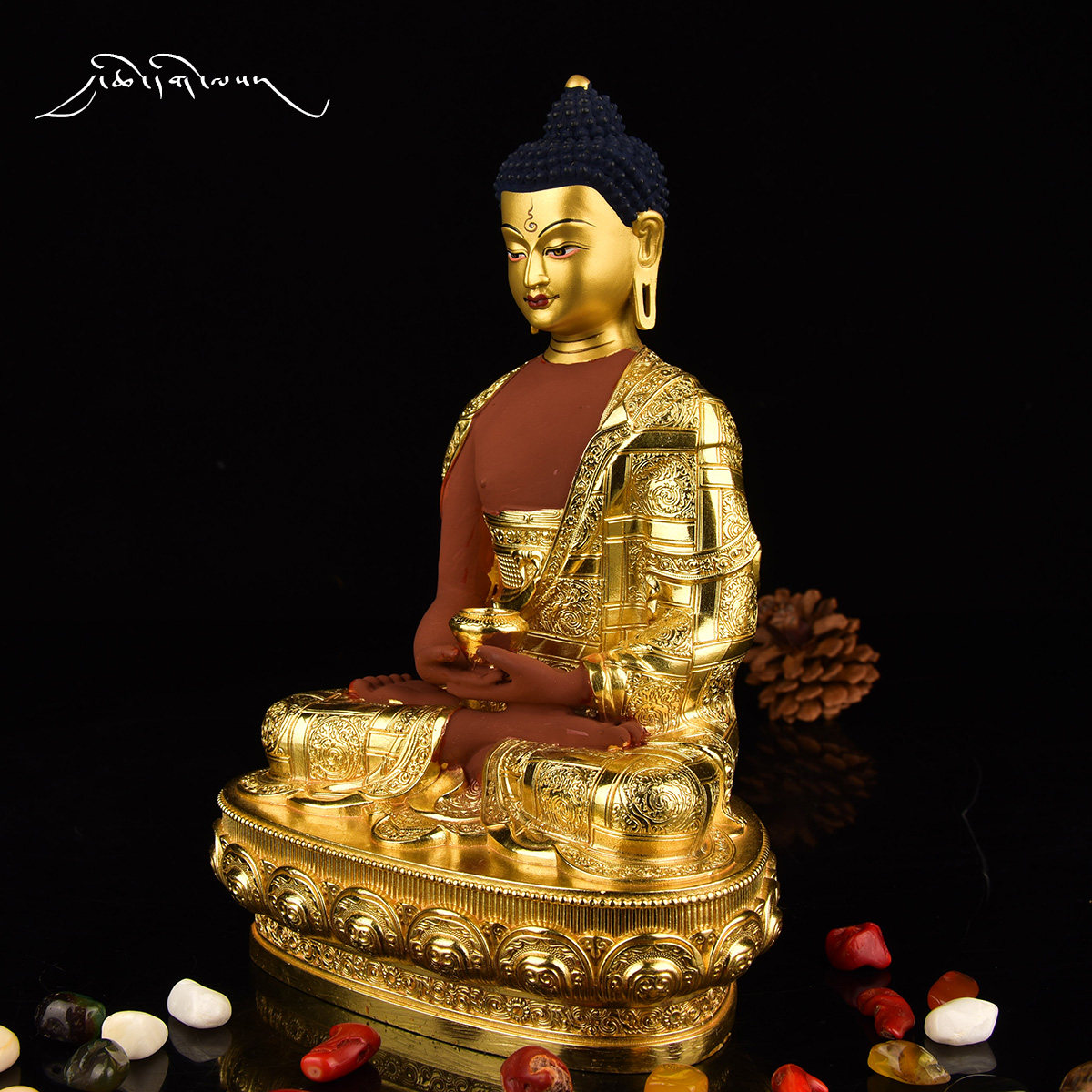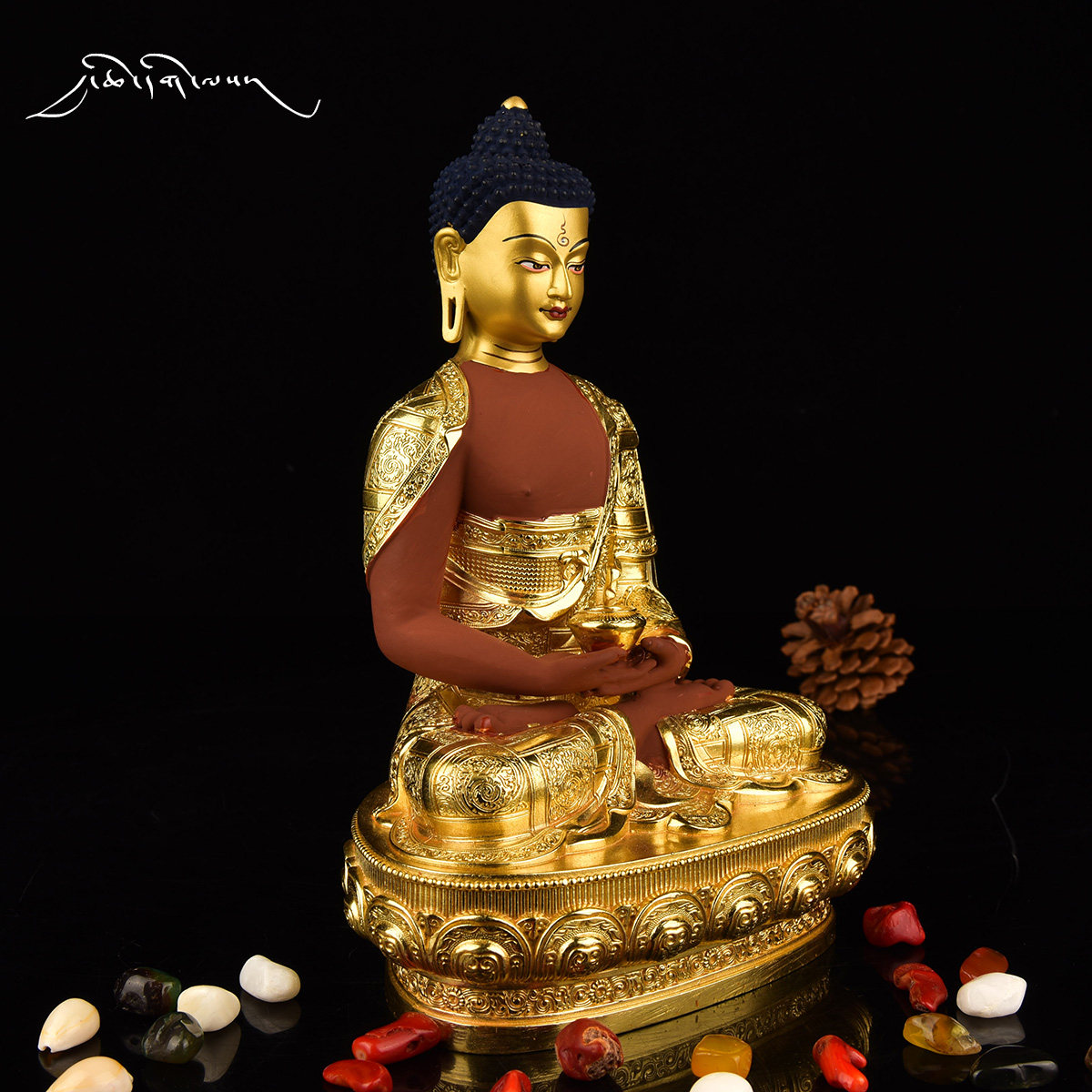 Daqian Shanyuan Tibetan Amitabha Buddha 7-inch Buddha statue gilded cinnabar carved with gemstones Tibetan Buddha statue ornaments