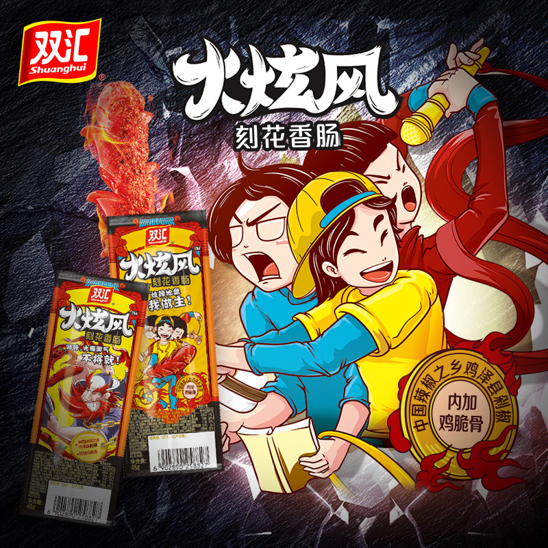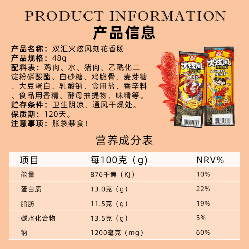 Double Sinks Fire Leg Bowel Fire Dazzling Sausage 48g * 10 Ready-to-eat Spiced Sausage Snacks Ham Sausage Official Flagship