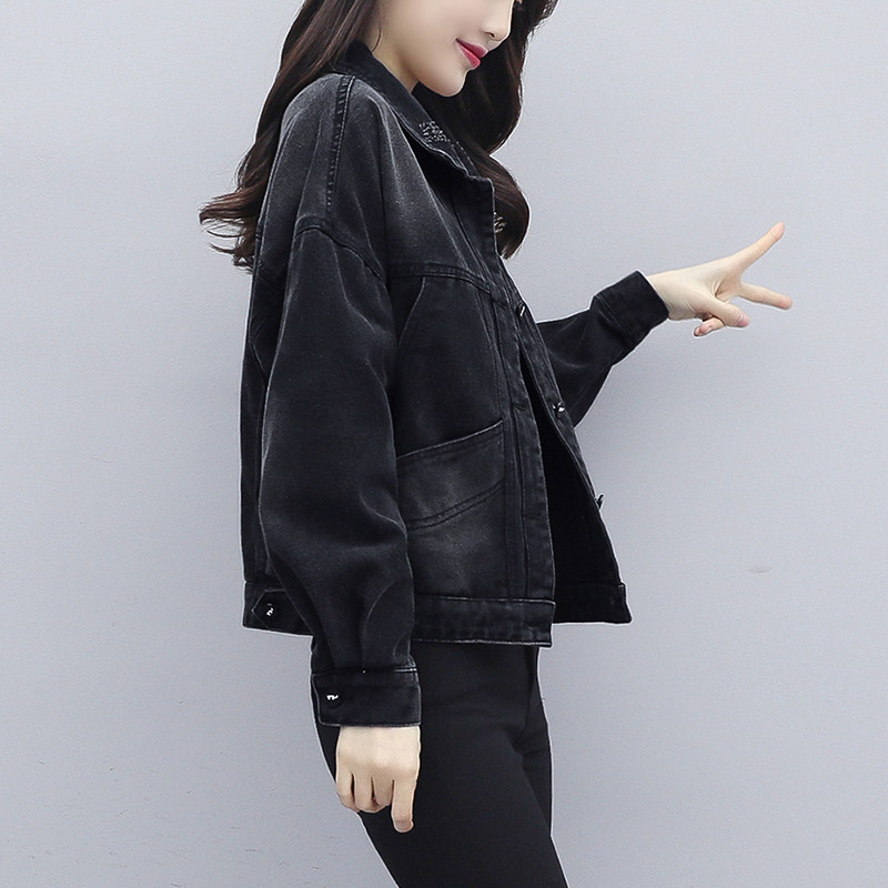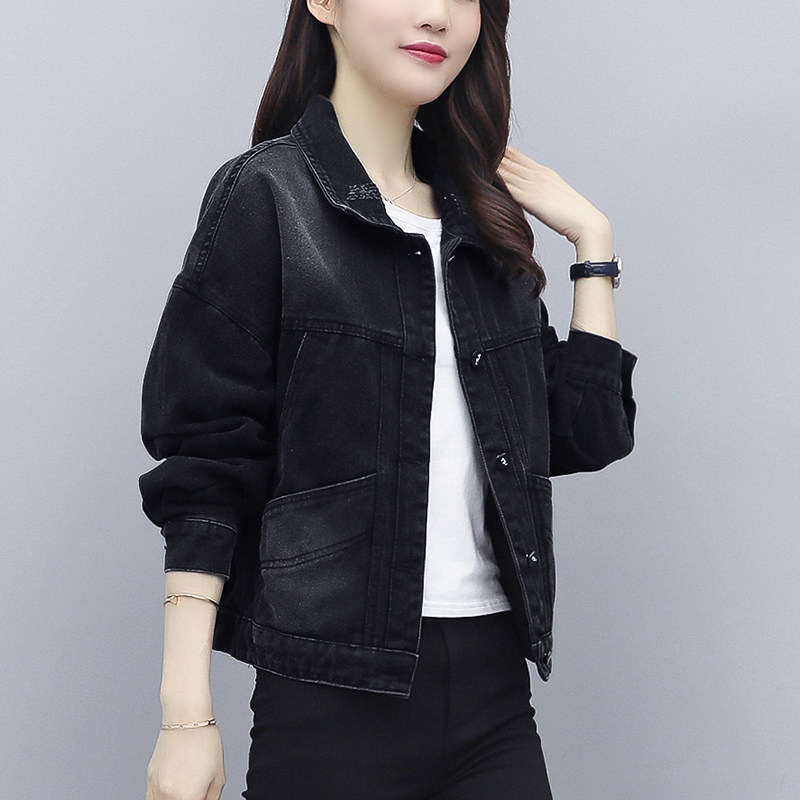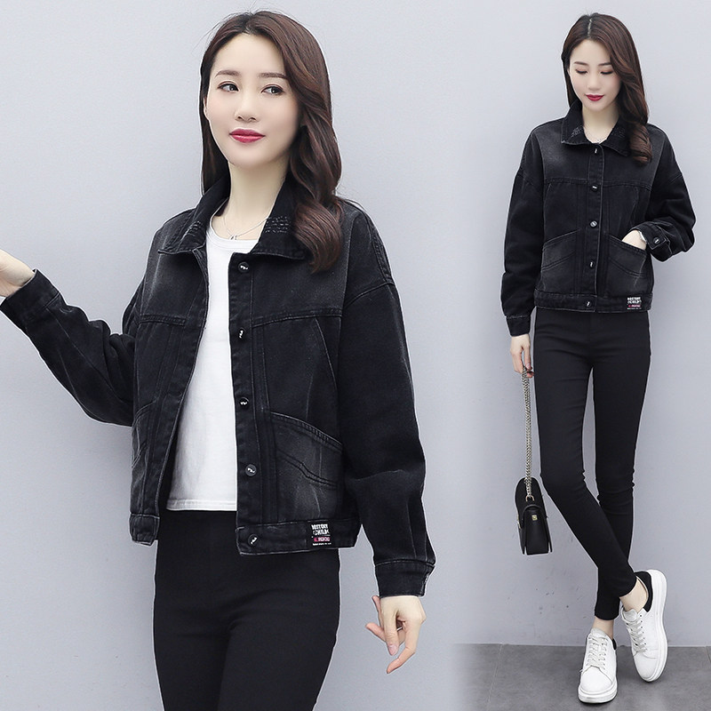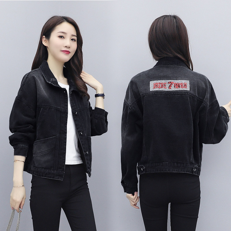 Spring Autumn Season Denim Jacket Woman 2022 Early spring new women's clothing loot shorts Korean version Fashion sequin black blouses
