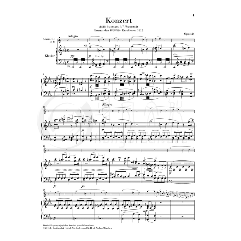 Schpol clarinet Concerto op26 with steel accompanied by Henle Henle original import sheet music book Louis Spohr Clarinet Conc