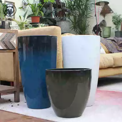 Shepherd large flower pot deep high basin High-gloss glaze thickening resin plastic Nordic simple living room floor balcony basin