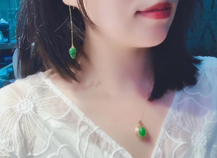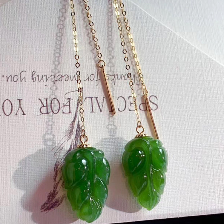 Natural Xinjiang Hetian jade Jasper earrings women's 18K gold drop earrings leaves short adjustable wearing fairy foot