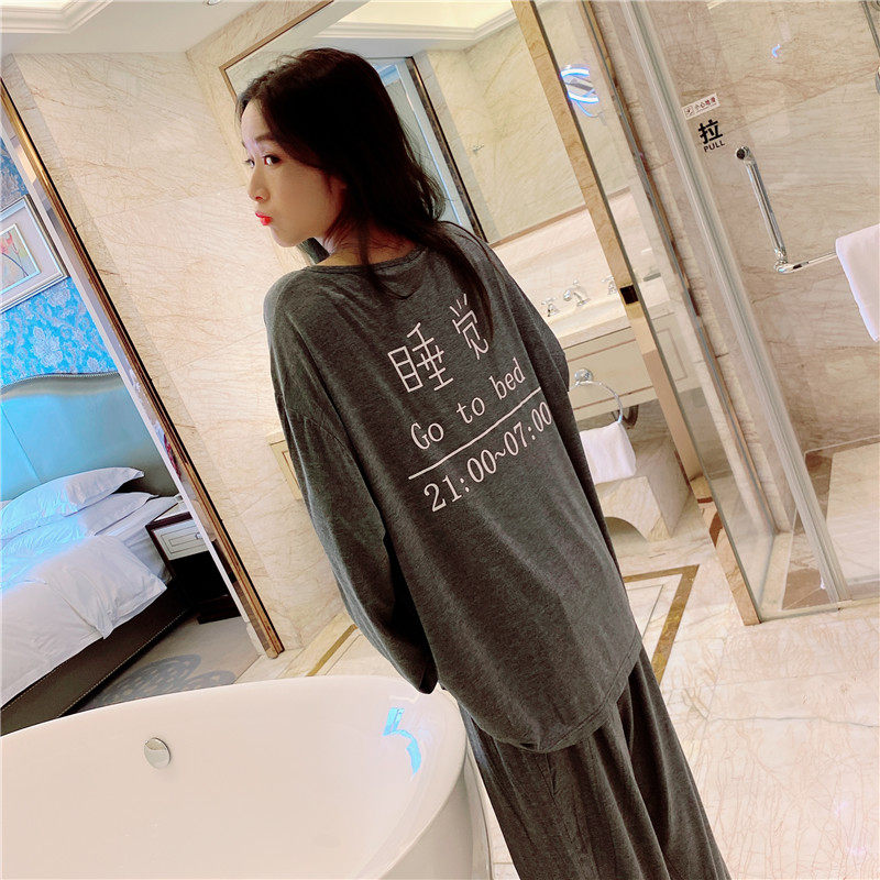 Internet celebrity ins lazy men and women couple pajamas female spring and autumn modal home service large size fat mm200 catties suit
