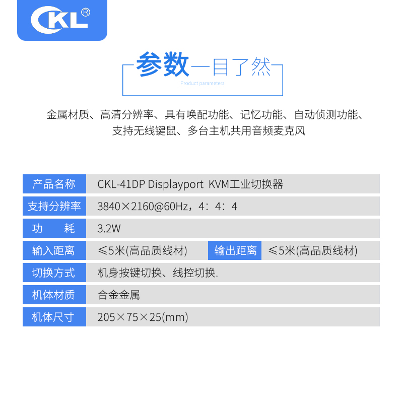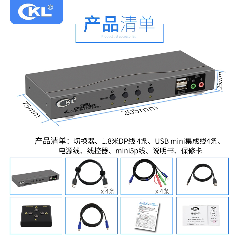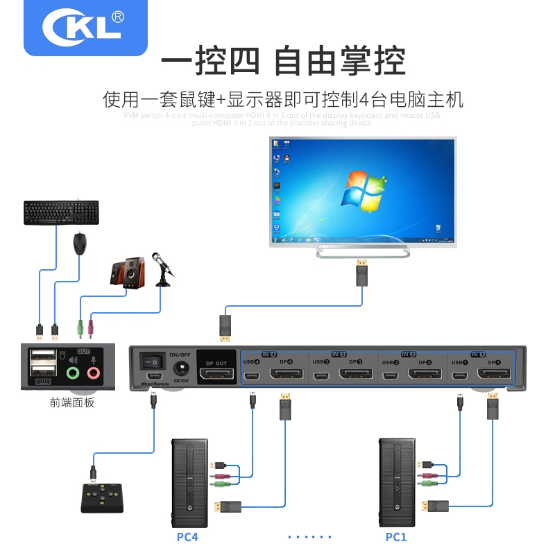 cKL DP Switchkvm Switch DisplayPort4 In 1 Out Keyboard and Mouse Monitor Shared Switcher CKL-41DP