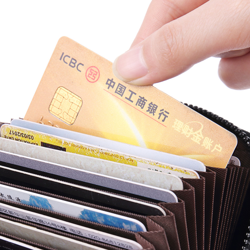 Anti-theft brush genuine leather card bag men anti-magnetic card holder ultra-thin document card with large and large female type cutting sleeve small
