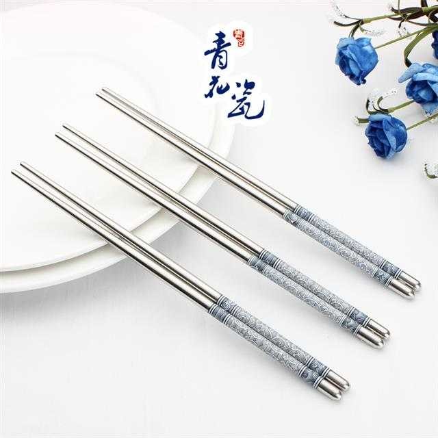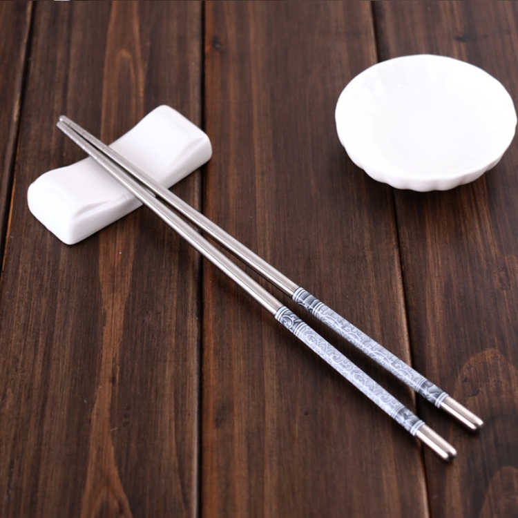5 - 50 double household green ceramic chopsticks metal anti - slip anti - hot stainless steel chopsticks group tableware