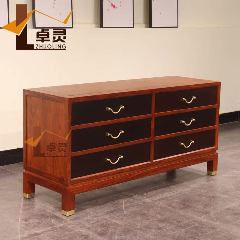 Zhuling New Chinese Hedgehog Purple Sandalwood Six Bucket Cabinet Suflower Pear Wood Bedroom TV Cabinet Containing Bucket Cabinet Solid Wood Six Bucket Closet