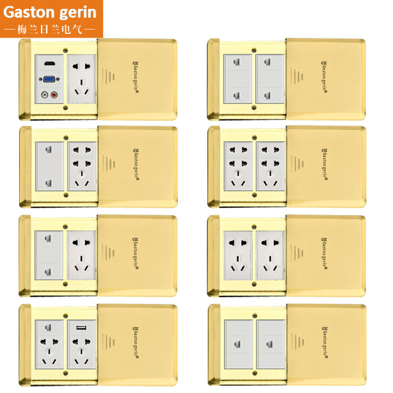 gaston gerin full copper flat push ten holes International versatile waterproof ground plug in double five-hole floor ground floor