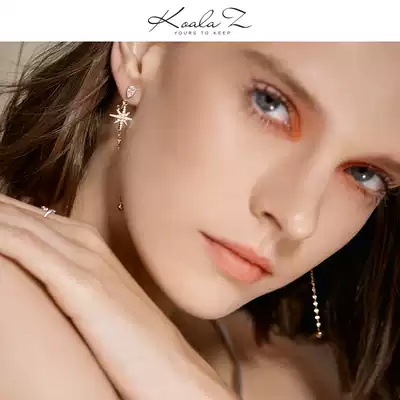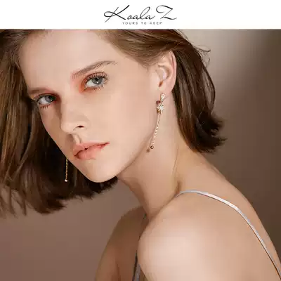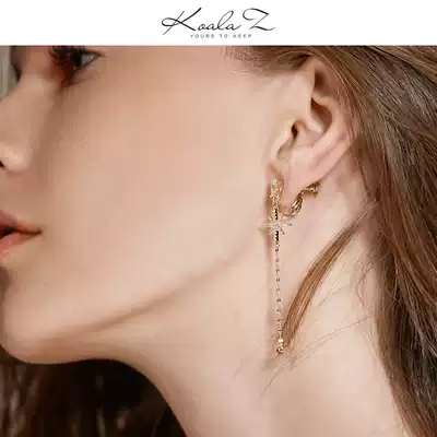 Golden astral zircon tassel exquisite aesthetic temperament ear needle earrings painless ear pierced ear clip koala pig