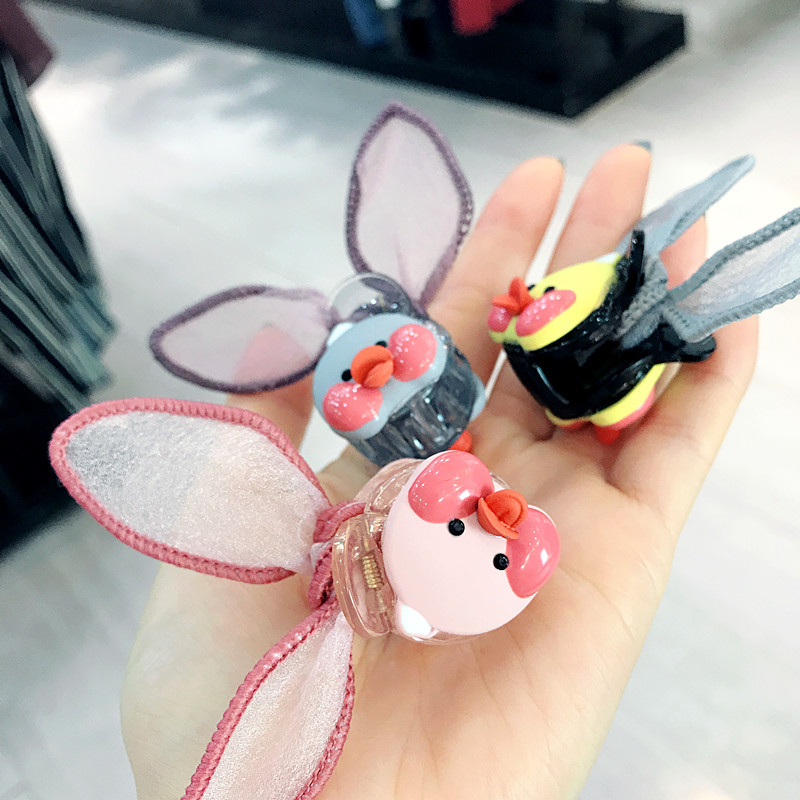 Cute children's hair accessories mesh rabbit ears little yellow duck hairclip clip Korean cartoon hairclip grab clip girl girl