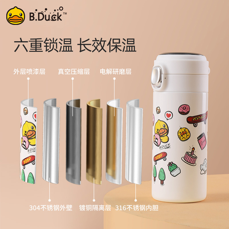 BDuck Small Yellow Duck Children Straight Drinks Insulated Cups Boys Girls Students Water Glass 316 Food Grade Stainless Steel Kettle