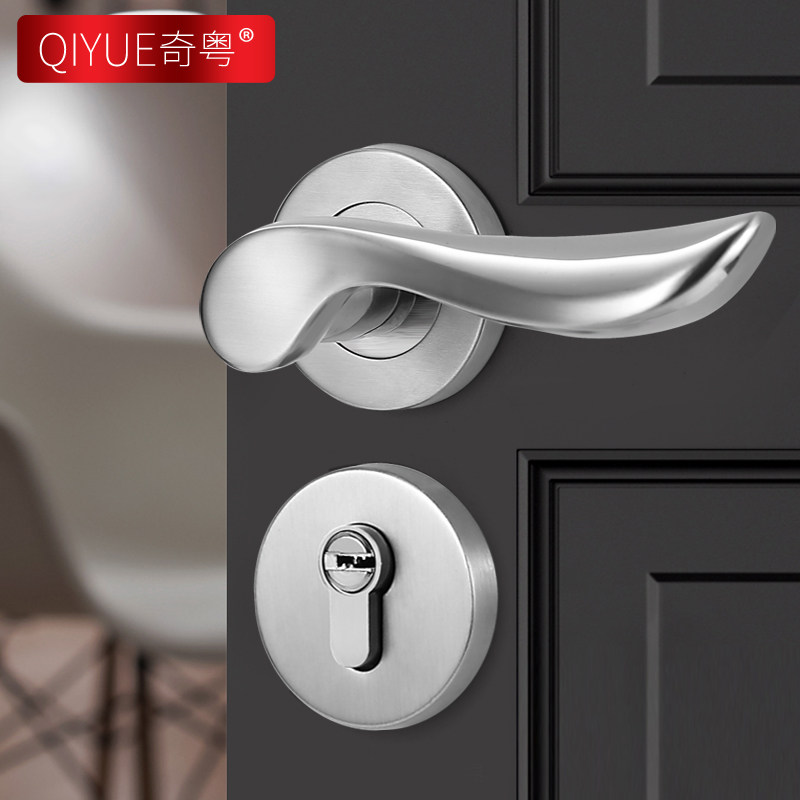 ChCantonese 304 stainless steel door lock indoor bedroom modern solid wood room door plate hand lock mute universal three sets