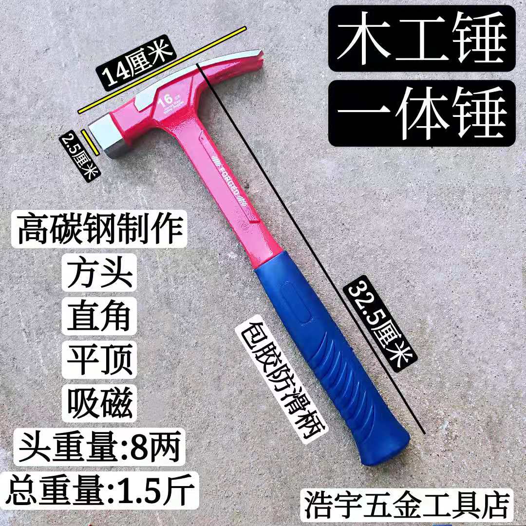 Carpentry hammer integrated hammer suction nail hammer square head hammer right angle hemp face flat top hammer carbon steel hammer wood working tool