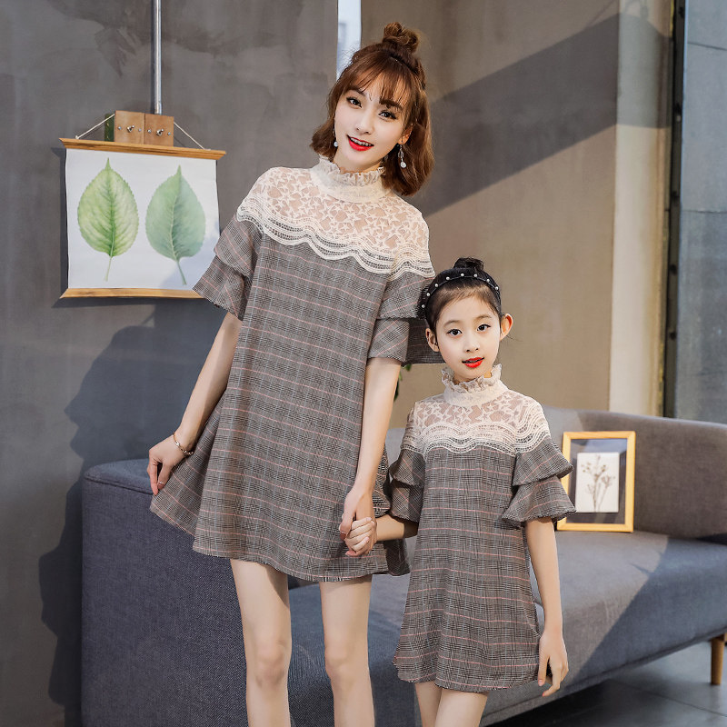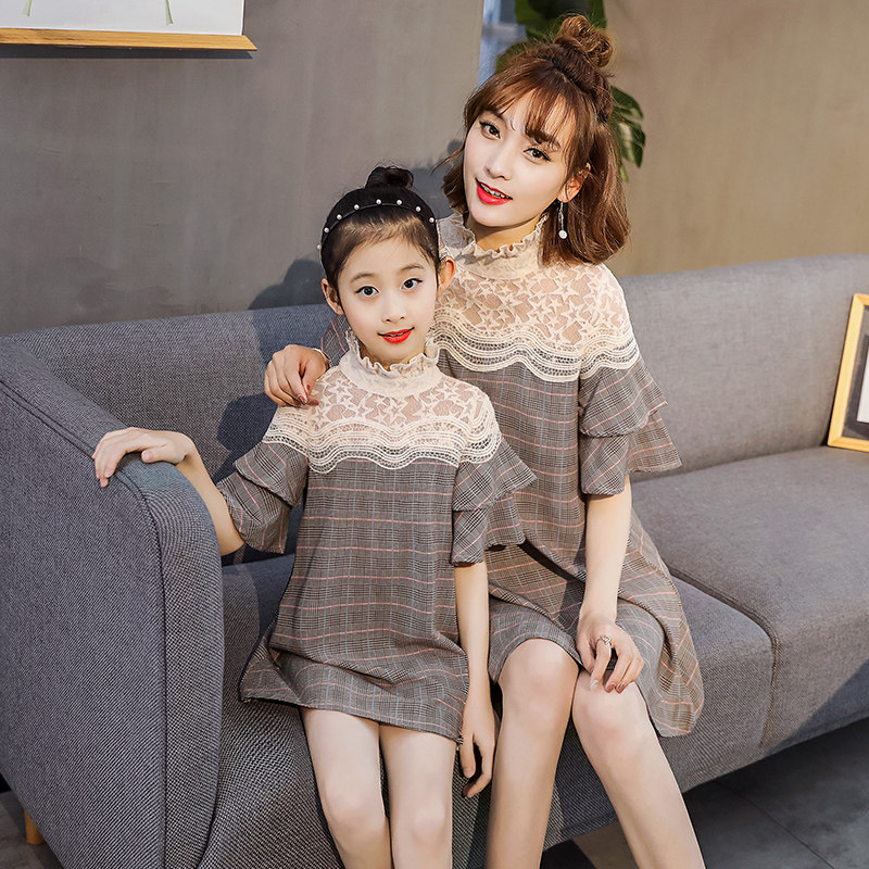 Net red parent-child 2021 autumn new mother-and-woman dress foreign fashion princess skirt plaid spring and autumn fashion