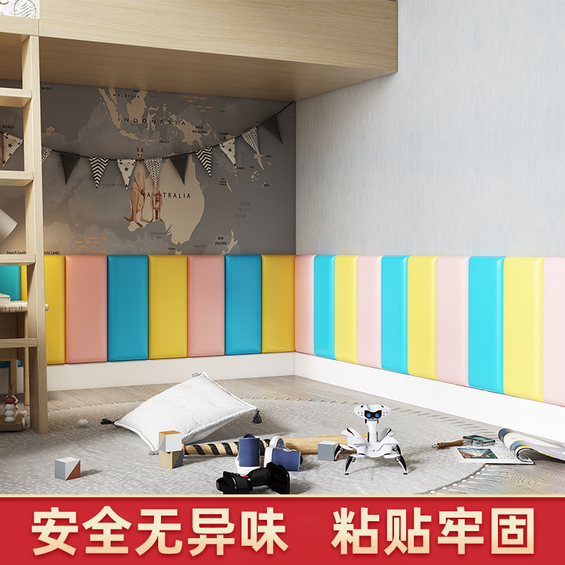 Tatami wall soft bag wall sticker self-adhesive children's anti-collision background wall Simple modern bedroom bed head board soft bag