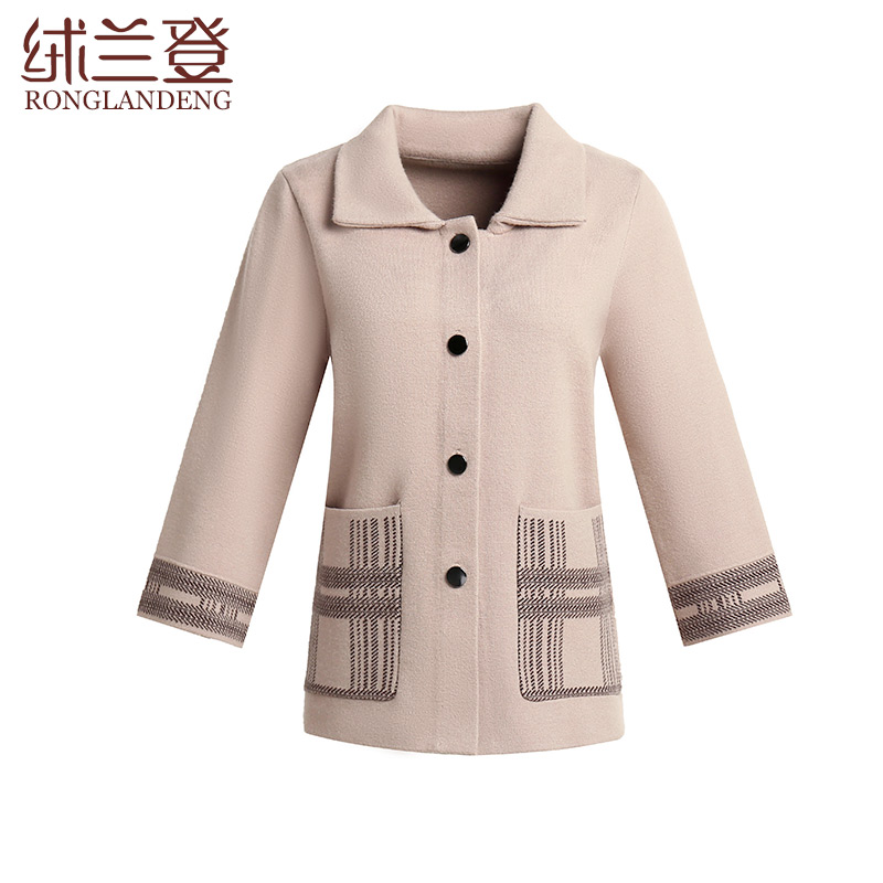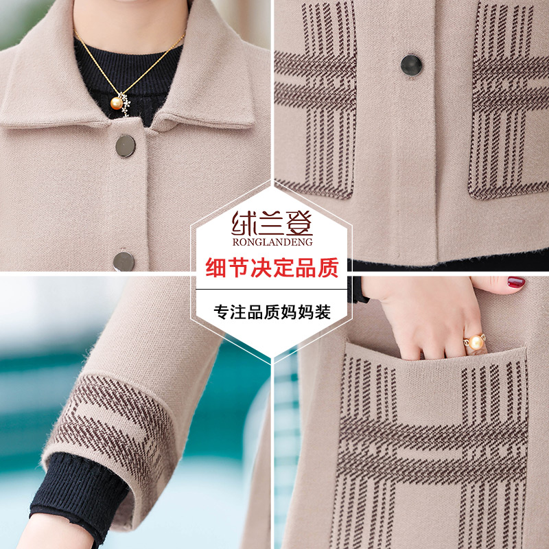 Mother Dress Spring Autumn Clothing Sweater Jacket 50 Year Old 60 Elderly Grandma Dress Collar Knit Cardiovert Aged clothes