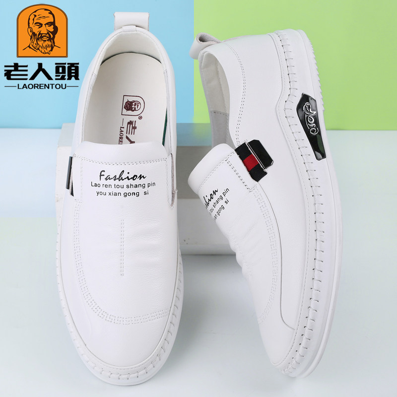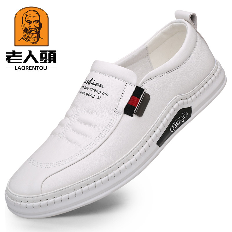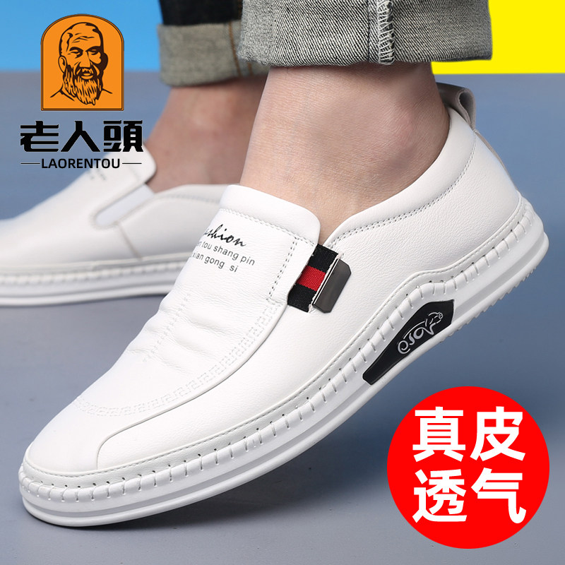Old man scalp shoes male spring and summer new leather business leisure white shoes hollow white shoes