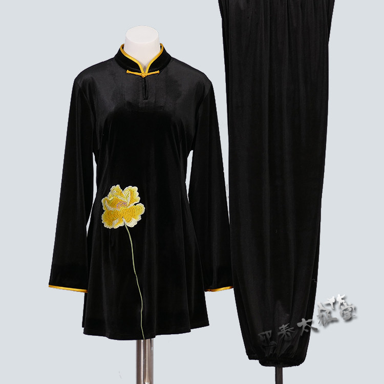 Upscale South Korean suede autumn winter brief Embroidery Tai Chi Clothing Women's Winter Morning Practice Lengthened Taijiquan Performance Wear-Taobao