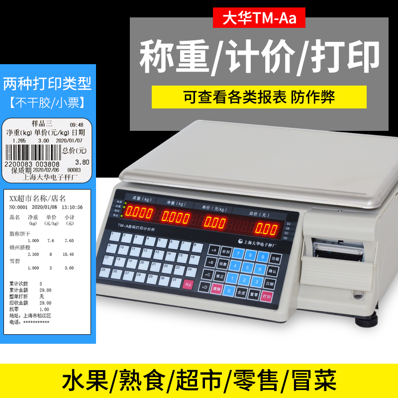 TM-A Dahua Electronic Scale Supermarket Weighing Coding Weighing And Vegetable Printing Label Sticker Barcode Scale Commercial